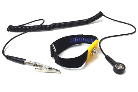 Браслет на липучке. Материал - проводящий нейлоновый браслет на липучке, внутреннее проводящее углеродное покрытие. Заземляющий проводник - скрученный шнур со встроенным резистором 1 МОм для защиты. Контактный зажим «крокодил». Длина заземляющего проводника примерно 2,3 м. Размер браслета\: 1,8 х 20 см. Цвет - Чёрный. Сопротивление: 10000 Ом..
