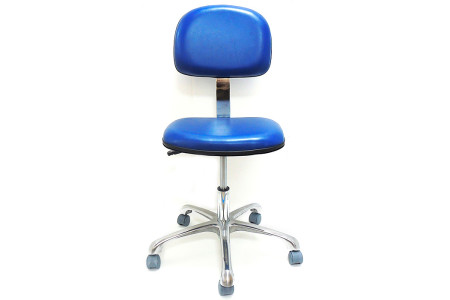 Кресло антистатического исполнения. Материал: искусственная кожа (винил). Цвет: синий. Высота: 440 - 580 мм. Алюминиевое 5-ти лучевое основание с 5 колесами. Размер сиденья: 440 х 410 мм. Размер спинки: 410 x 300 мм. Сопротивление: 10..