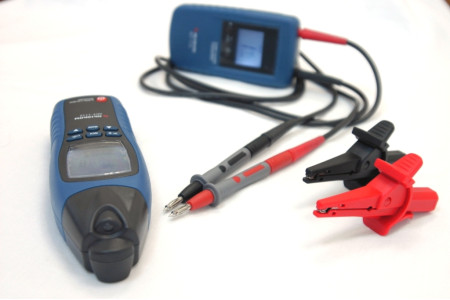 Тестер многожильных кабелей. Автоматический контроль 16 кабельных жил с индикацией номера жилы. Определения обрыва, короткого замыкания и перехлёста жил. Передатчик имеет 17 выводов с зажимами "крокодил" и 2 светодиодных индикатора (рабочий режим и низкий заряд батарей), а приёмник имеет 2 вывода с зажимами "крокодил" и цифровой индикатор номера жи..
