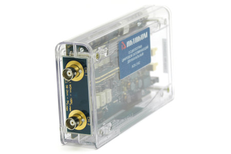 2-х канальный осциллограф - внешняя приставка к ПК, 100 МГц, дискретизация 8 бит/ 100 MS/s-10 GS/s, коэфф. отклонен. 2 мВ/дел - 10 В/дел., коэф. развертки 0,01 мкс/дел - 100 ч/дел., макс. вх. напряжение ±100 В, входы 1 МОм/50 Ом, режим самописца, анализатор спектра, цифровая фильтрация, вх. внешн. синхронизации, калибратор, USB 1.1., гальваническая..