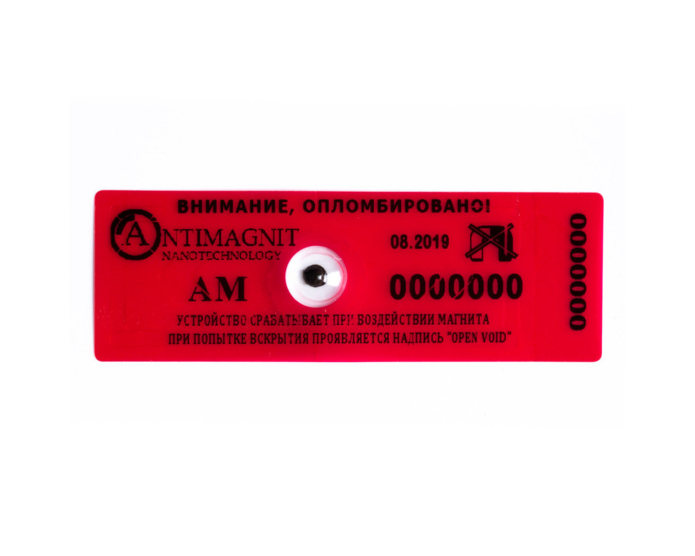 2. Инновационные материалы наклейки, не позволяют удалить индикатор магнитного поля с прибора учета, так как, при попытке снятия пломбы разрушается структура наклейки и появляется надпись: «OPEN VOID».