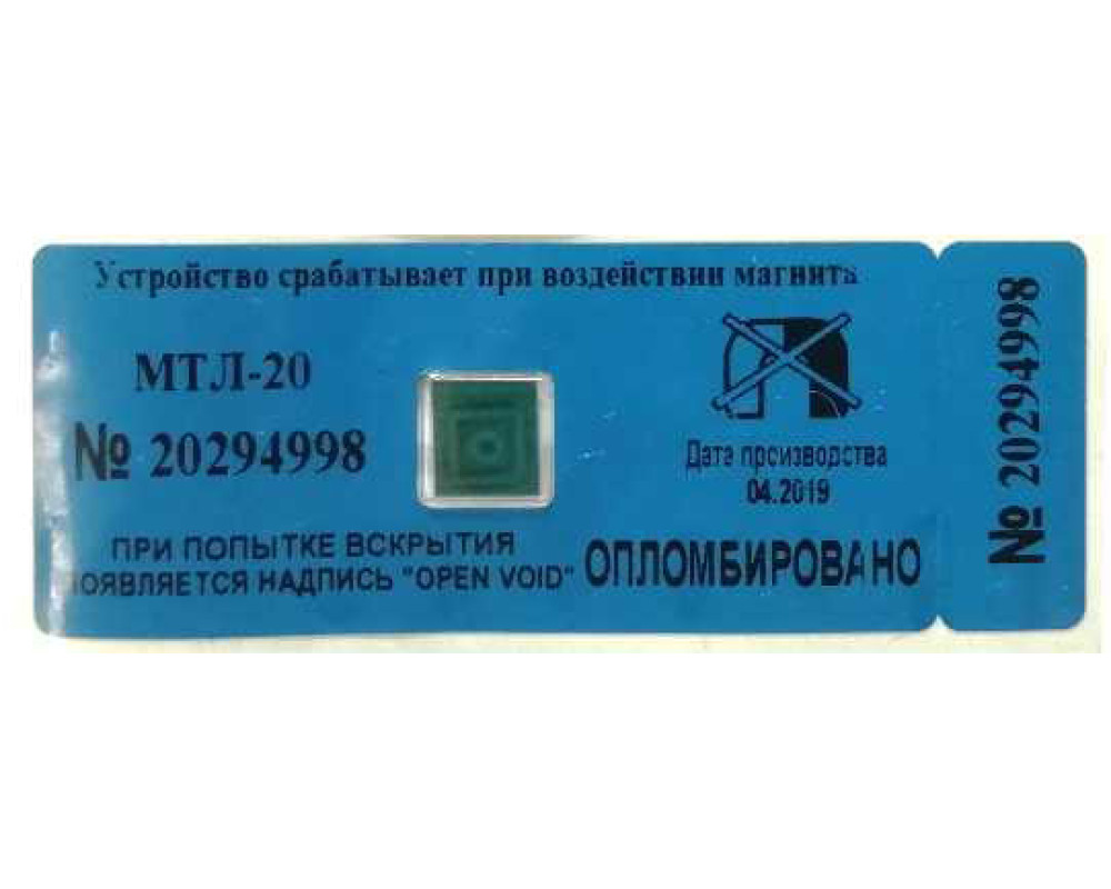 2. Инновационные материалы наклейки, не позволяют удалить индикатор магнитного поля с прибора учета, так как, при попытке снятия пломбы разрушается структура наклейки и появляется надпись: «OPEN VOID».