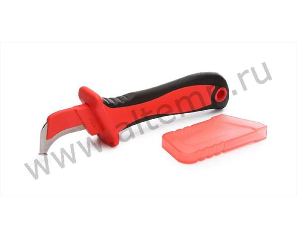 - Частично изолированное изогнутое лезвие с «пяткой» для легкого вскрытия оболочки кабеля без риска повреждения жилы