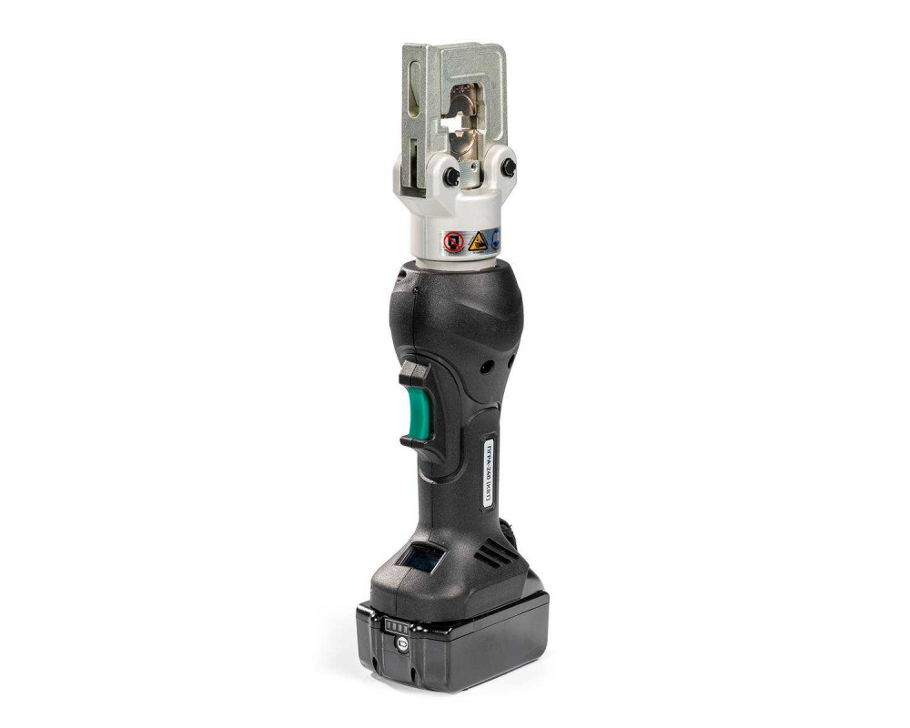 Особенности конструкции: сменные матрицы|П-образная форма рабочей головы|стальная рабочая голова|вращающаяся рабочая голова|автоматический возврат штока|батареи в комлекте|индикатор заряда батареи