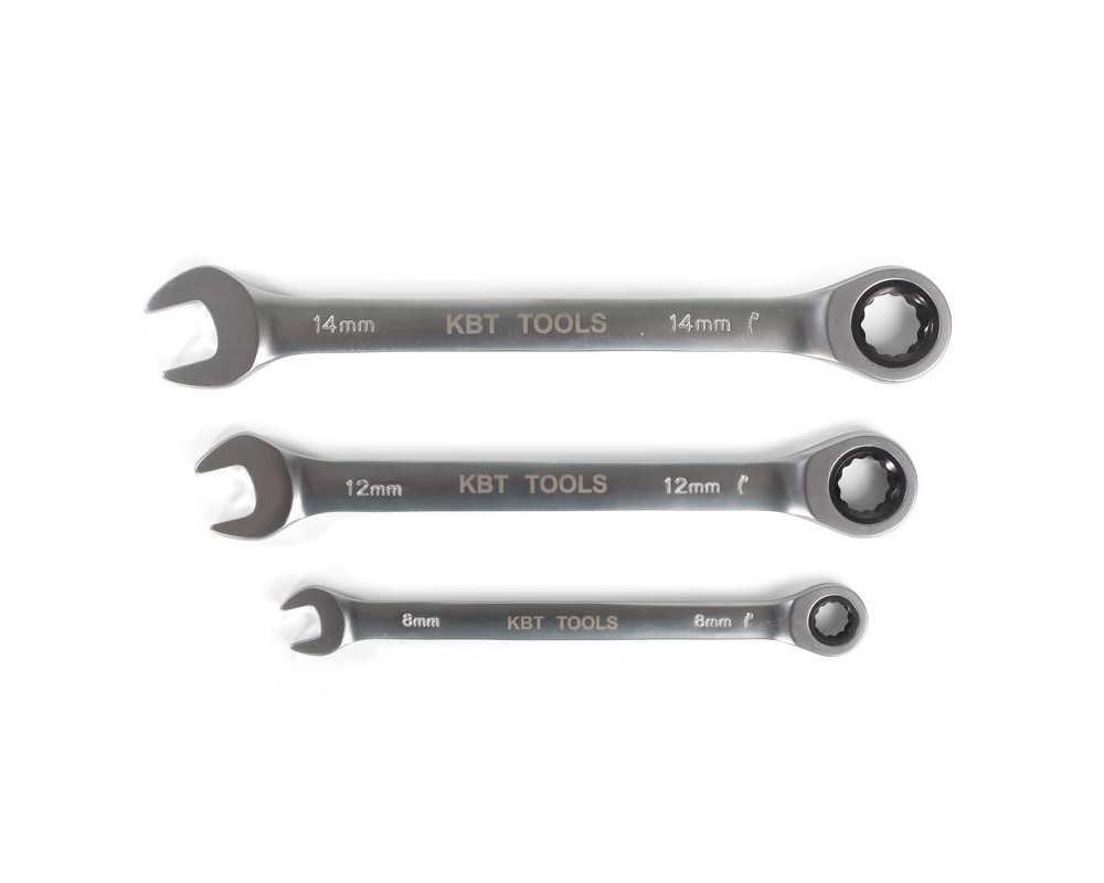 Назначение, применение: монтаж и демонтаж резьбовых соединений в ограниченном пространстве при проведении слесарно-монтажных, авторемонтных, сантехнических работ Тип инструмента: ключ Серия: KBT-PROFESSIONAL Вид ключа: слесарный|комбинированный|трещоточный Материал ключа: хром-ванадиевая сталь Типоразмеры ключа: 14 Особенности конструкции: количест..