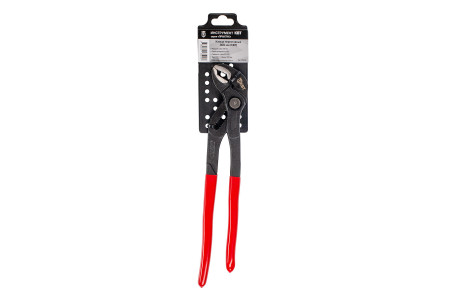 Назначение, применение: Монтажные, сантехнические, слесарные работы: захват плоских, круглых и многогранных деталей Тип инструмента: клещи переставные Серия: ПРАКТИК Материал рабочей части: хром-ванадиевая сталь Покрытие рабочей части: воронение Исполнение рукояток: пластизоль Особенности конструкции: Самофиксация на трубах и гайках|Регулировка рас..