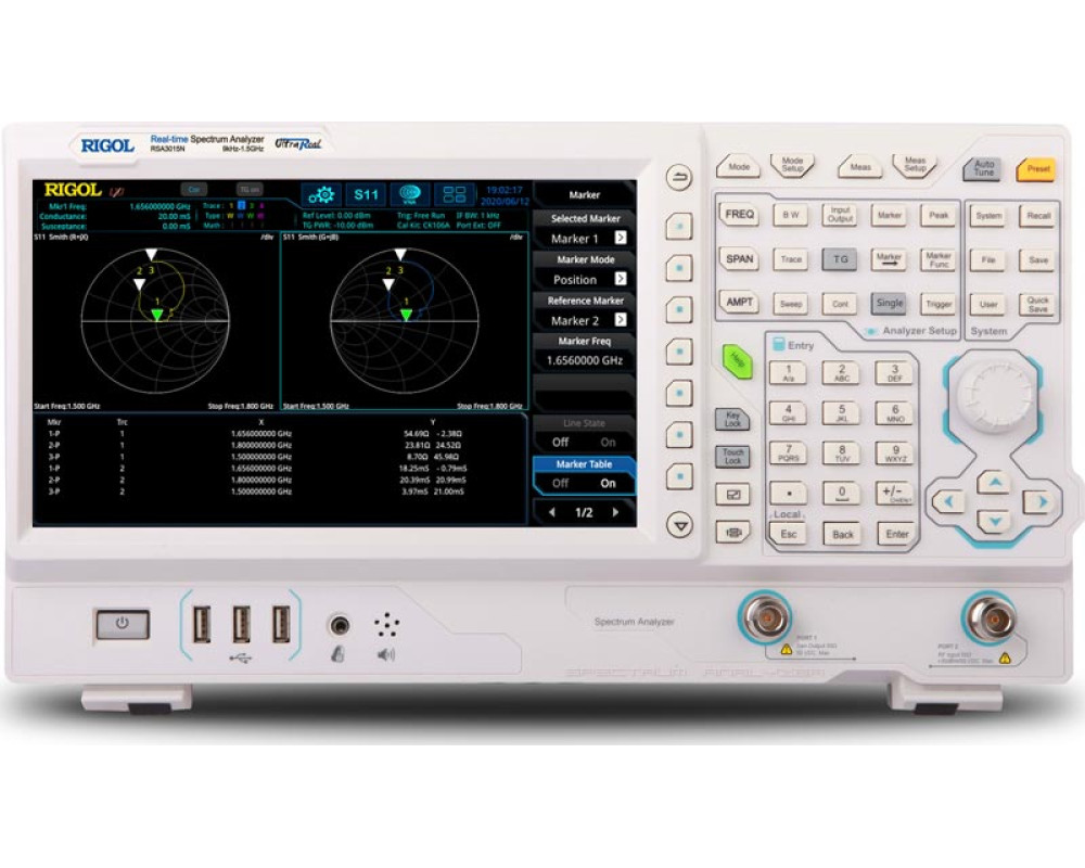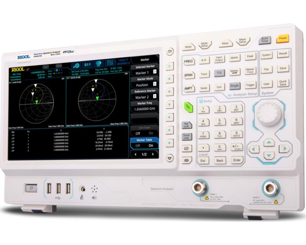 Режимы: анализатор спектра (GPSA) и анализатор спектра реального времени (RTSA), векторный анализатор (VNA). Полоса от 9 кГц до 1,5 ГГц. Технология UltraReal. Погрешность опорного генератора: 1 ppm (0,1 ppm). GPSA: полоса обзора: нулевая, от 100 Гц (от 10 Гц - опция) до макс. частоты; разрешение 2 Гц; фильтр ПЧ: 10 Гц...3 МГц (1 Гц…10 МГц опция), ЭМС фильтры; видеофильтр: 1 Гц…10 МГц; фазовый шум: -112 дБн @ 1 МГц; средний уровень собственного шума DANL: -141 дБм (без п/у), -161 дБм (с п/у, опция); диапазон измерения: DANL...+30 дБм. RTSA: полоса захвата 10 МГц (25 МГц и 40 МГц опция); мин. длительность событий 9,3 мкс (до 7,45 мкс опция), SFDR <-50 дБн/Гц, 6 типов окон. VNA: тип S11, S21, DTF, полоса 1 кГц...10 МГц. Трекинг-генератор: 100 кГц...1,5 ГГц. Цветной дисплей 10,1" (1024х600). Интерфейсы LAN, USB, HDMI. Размеры 410 х 224 х 135 мм, масса 4,95 кг.
