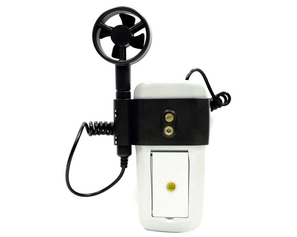 Анемометр с выносным датчиком для измерения скорости потока воздуха в диапазоне 0,4-30 м/с. Разрешение 0,01 м/с. Погрешность ±(0,03•V+0,2) м/с. Измерение температуры воздушного потока: 0...50 °С. Датчик – крыльчатка 72 мм, термистор. Фиксация текущего, мин., средн. и макс. значения. Вычисление объема воздушного потока. Расчет среднего значения за п..