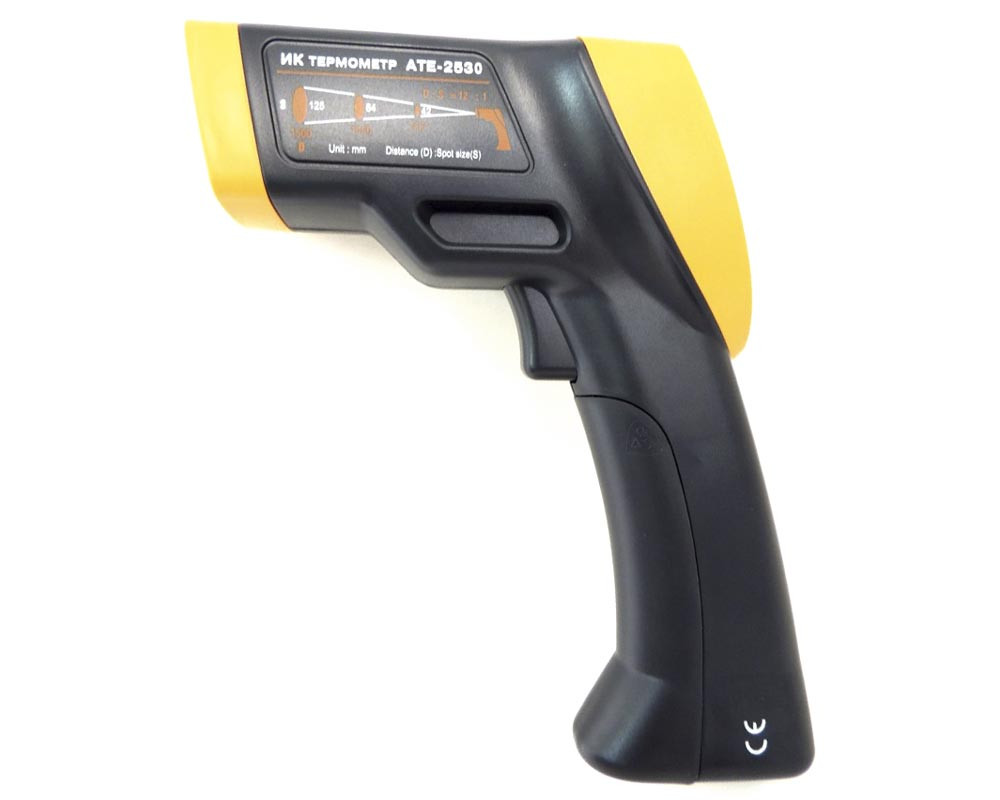 Измерение температуры: пирометр -20…+537 °С, лазерный маркер, оптическое разрешение 12:1; функция удержания, min/max/среднее значения; регулируемая интенсивность излучения; индикация 2-х температур на дисплее; подсветка дисплея. Питание – 9 В (Крона). Размер: 162х56х190 мм. Вес: 280 г.