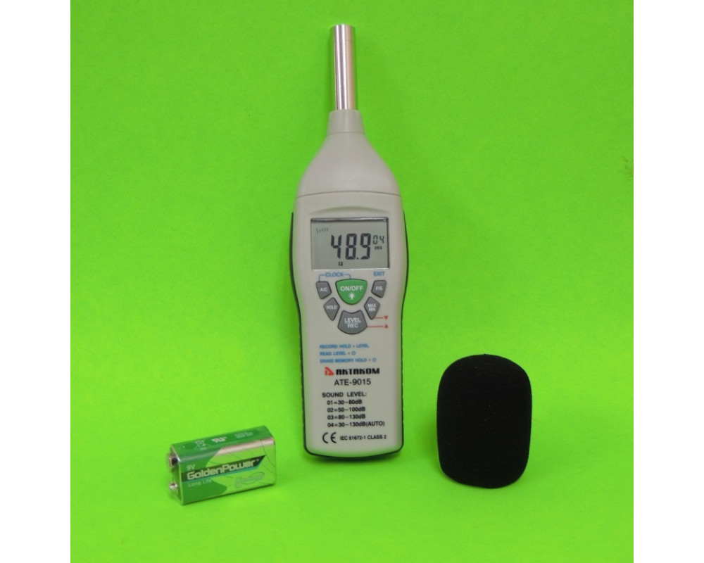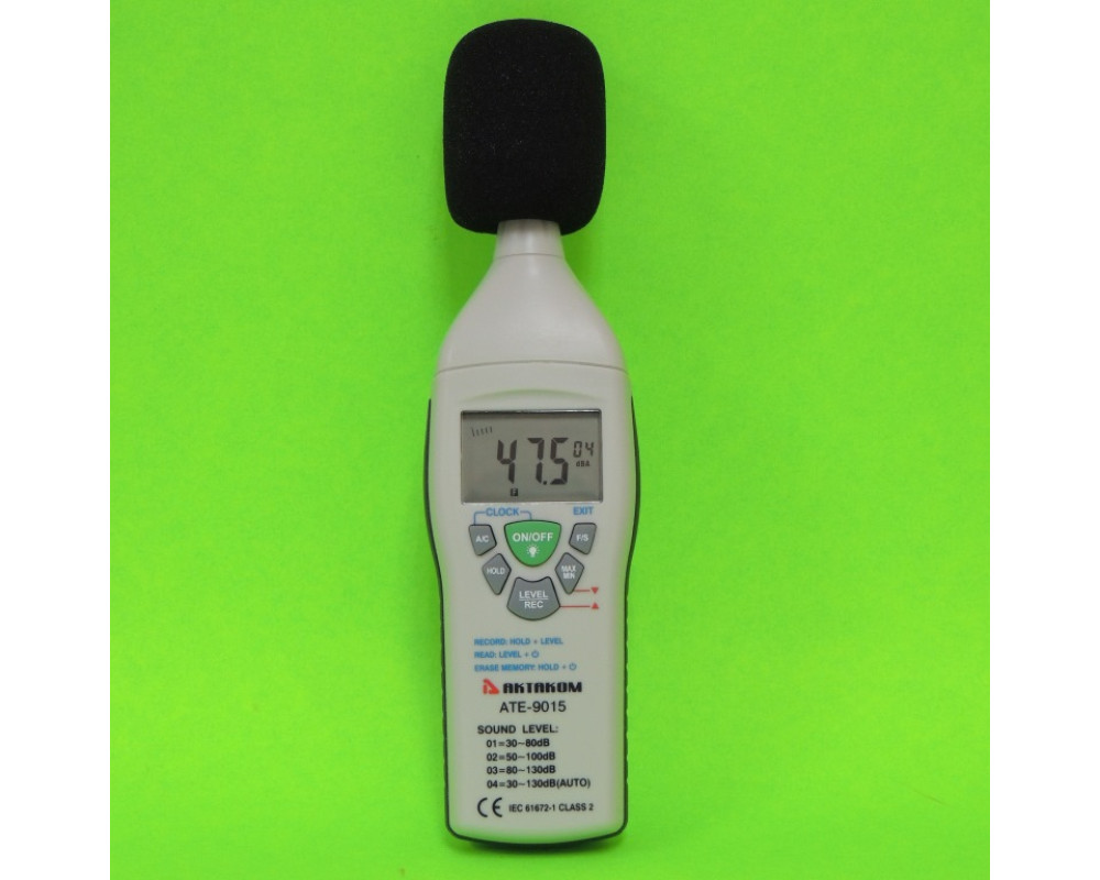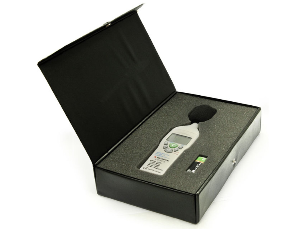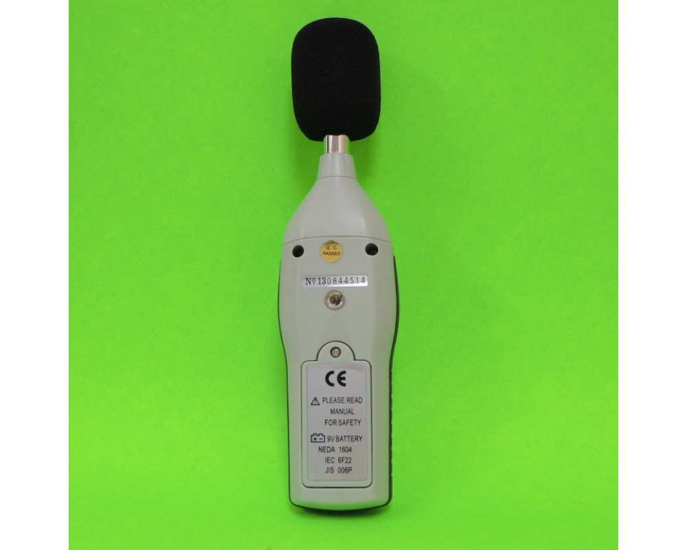 Шумомер в диапазоне частот от 30 до 130 дБ. 3 поддиапазона (30...80 дБ; 50...100 дБ; 80...130 дБ). Частота: 31,5...8000 Гц. Разрешение: 0,1 дБ. 2 режима работы: быстрый (125 мс) и медленный (1 с). 2 шкалы весовых коэффициентов: А и С. Фиксация максимальных, минимальных и текущих значений. Точность 1,4 дБ. Память 50 показаний. Питание 9 В. Размеры: 210х55х32 мм. Масса: 230 г.