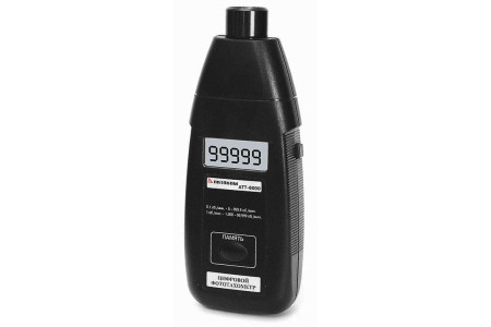 Цифровой тахометр (фотодатчик). Диапазон измерений от 5 до 99999 об/мин. Разрешение 0,1/1 об/мин. Погрешность 0,1%. Измерение на расстоянии от 50 до 150 мм. Питание: 4 х1,5 В (АА). Габариты: 190х72х37 мм, вес 235 г...