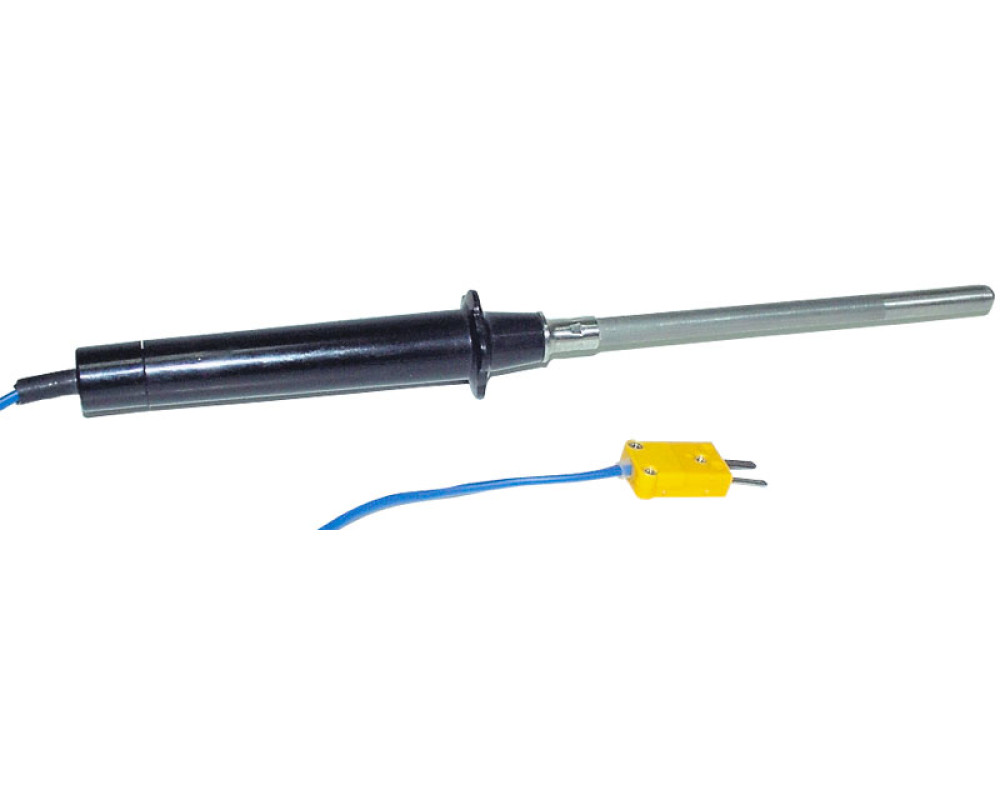 Термопара К-типа погружная контактная для измерения высоких температур. Выполнена в виде щупа. Диапазон измерений от -50 до 1200 °С. Длина 10 см, диаметр 8 мм.