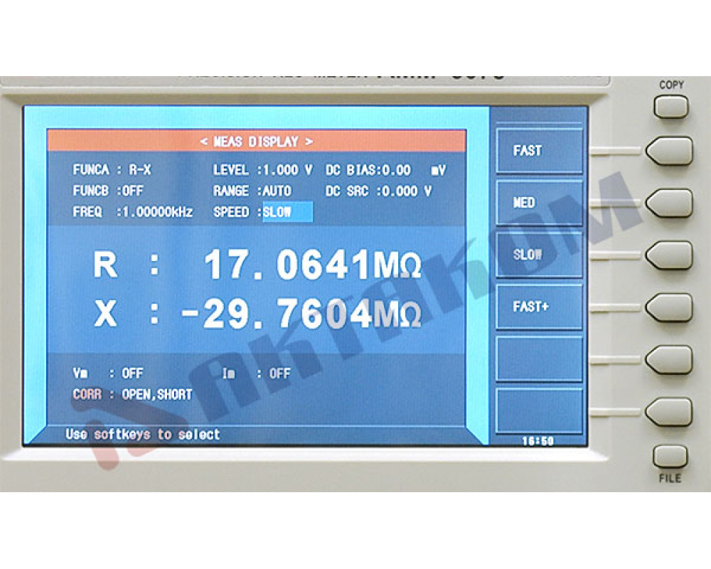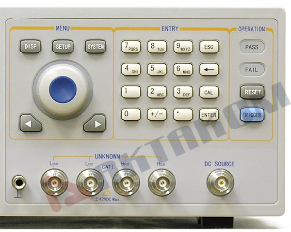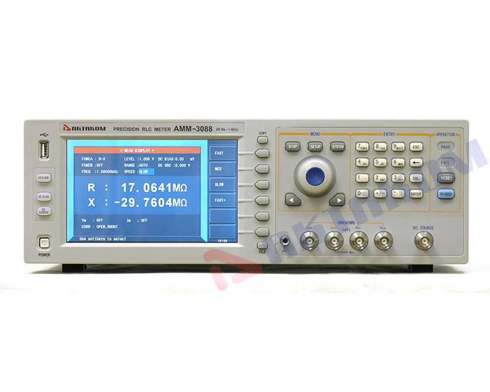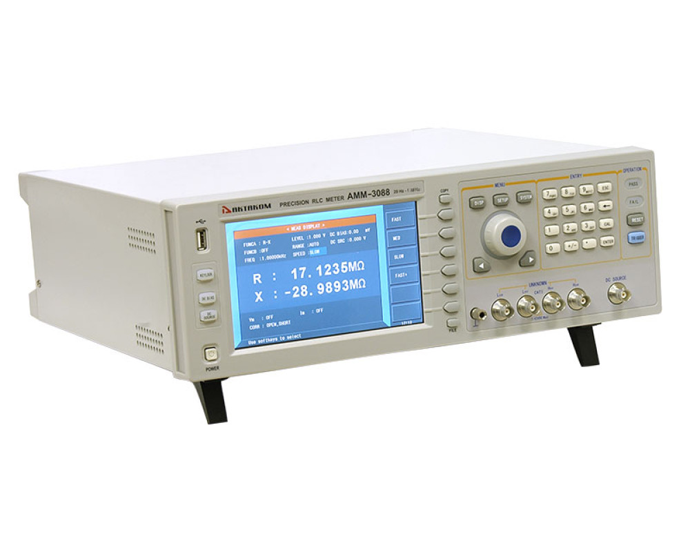 Прецизионный LCR-метр с функцией графического анализа. Тестовая частота 20 Гц...1 МГц. Базовая погрешность 0,05%. 3 cкорости измерения (наилучшая 9 мс/сек). Емкость (C) 0,00001пФ-10Ф, индуктивность (L) 0,00001мкГн-100кГн, сопротивление (Z, R, X, DCR) 0,00001Ом-100МОм, проводимость (Y, G, B) 0,00001мкСм-100См, добротности (Q) 0,00001-99999,9, тангенса угла потерь (D) 0,00001-10, фазовый угол, отклонение%. Посл. и параллельная схема замещения. Внутренний источник смещения (0В...±10В / 0мА...±100мА, опция - 1А). Независимый источник смещения (00В...±10В / 0мА...±50мА). Возможность подключения внешнего источника смещения (до 120 А). Свипирование по 150 точкам. Выбор внутр.импеданса (AC): 30 Ом, 50 Ом, 100 Ом. Компаратор. Одновременное отобр. 4 параметра. Внутр. память -100 установок. Сохранение на USB. Интерфейсы RS232C, USB, LAN, HANDLER, DCI. ЖК-дисплей 7" TFT. Габариты 400х132х385мм, масса 13 кг.