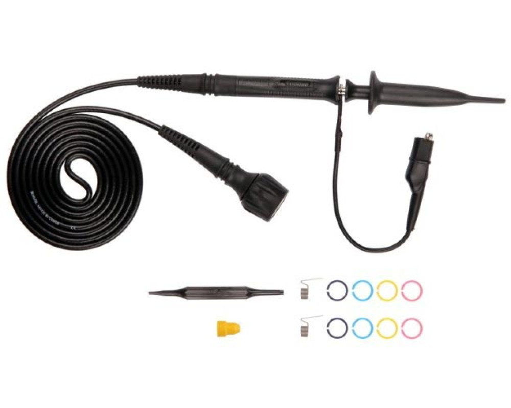 Пробник пассивный. DC-200 МГц, коэф. ослабления 10х, входной импеданс 10 МОм/12 пФ, макс. входное напряжение 300 В CAT II, диапазон компенсации 15...25 пФ, кабель 1,3 м...