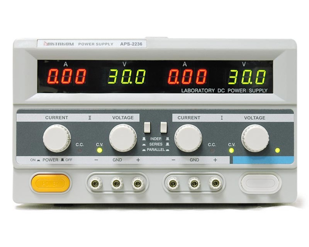 2x30 В, 2x3 А. 2 канала. Максимальная мощность 180 Вт. Линейный. 4 цифровых 3-х разрядных LED дисплея. Последовательное (60 В / 3 А) и параллельное (30 В / 6 А). Трекинг режим. Габаритные размеры 470x255х155 мм. Вес 8 кг...