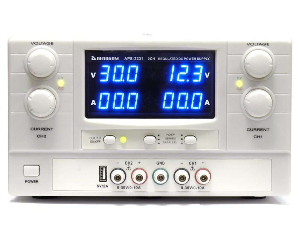 2x30 В, 2x5 А. 2 канала. Максимальная мощность 300 Вт. Линейный. 4 цифровых 3-х разрядных LED дисплея. Последовательное (60 В / 5 А) и параллельное (30 В / 10А). Трекинг режим. Габаритные размеры 470x255х155 мм. Вес 9 кг...