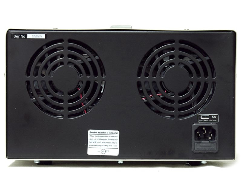 3 канала: 2 регулируемых канала по 30 В, 3 А; 1 нерегулируемый канал 5 В, 3 А. Макс.мощность 195 Вт. 4 цифровых 3-разрядных дисплея. Разрешение 0,1 В / 0,01 А. Последовательное и параллельное соединение регулируемых каналов. Габаритные размеры 385х268х164 мм. Масса 10 кг.