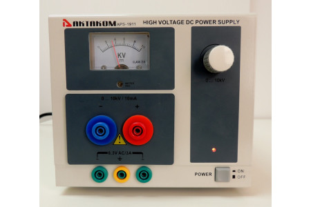 Два выхода (основной и дополнительный): DC 0...10 кВ / 10 мА и AC 6,3 В / 3 А. Стрелочный индикатор. 1 канал. Напряжение питания: 220 В ± 10% 50 Гц. Габариты: 170х160х275 мм. Масса: 2 кг...