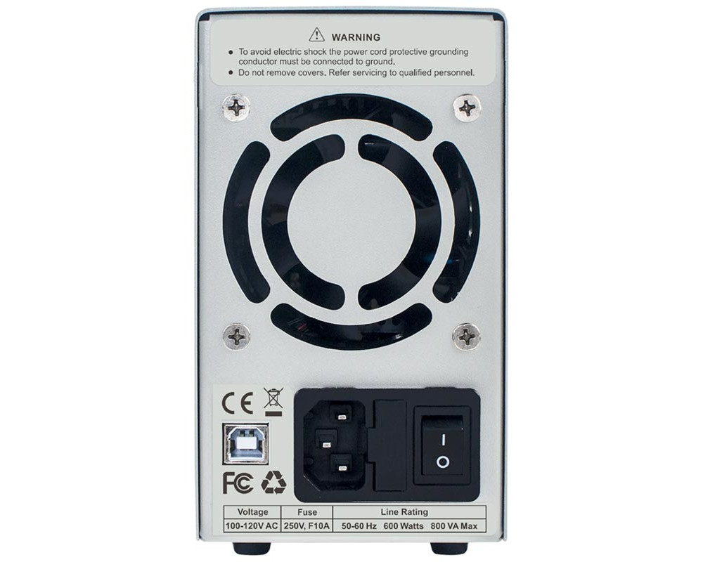 60 В, 10 А. Макс. мощность 600 Вт. Линейный. 2 LED индикатора. 1 канал. 4-х проводная схема. Пульсации/шум - 10 мВ скз. Кнопка включения/отключения нагрузки. Разрешение 10 мВ/ 1 мА. Интерфейсы USB и LAN. Размеры 265 x 140 x 360. Вес 17 кг..