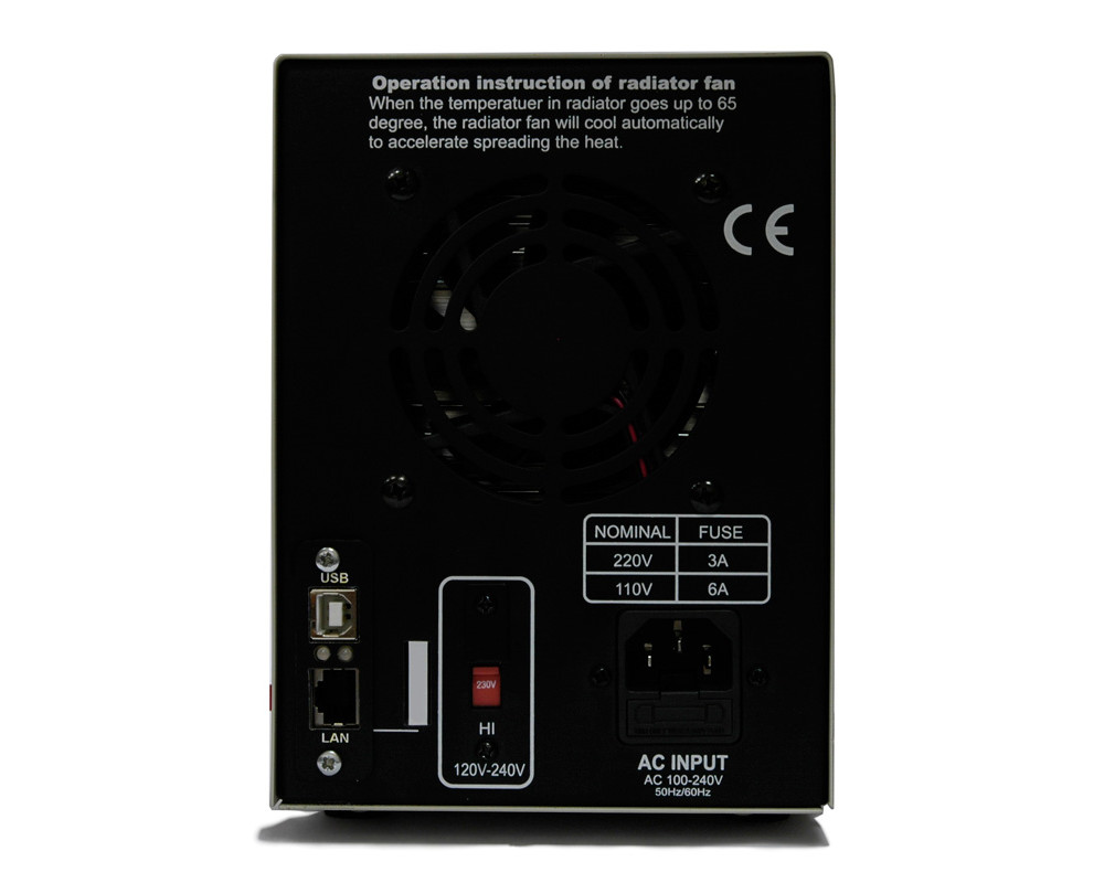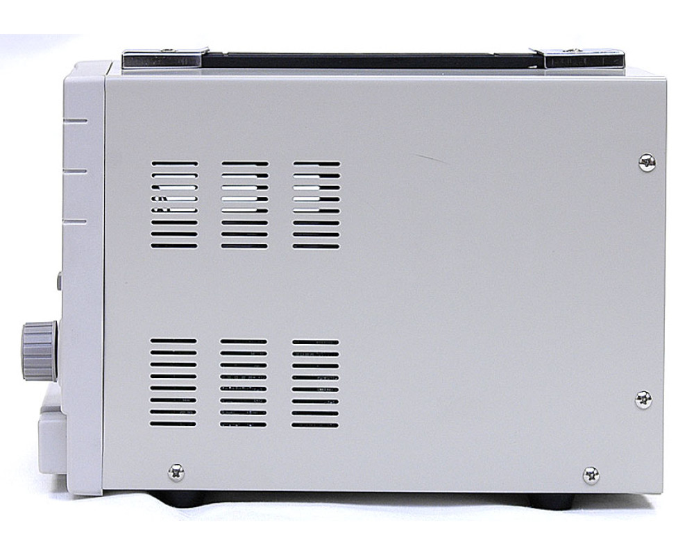 Линейный управляемый источник питания, 30 В, 5 А. Макс. мощность 150 Вт. 1 канал, 2 LED индикатора. Пульсации/шум - 2 мВ скз. Разрешение установки выходного напряжения - 10 мВ, выходного тока - 1 мА. 3 ячейки памяти для записи установок, функция ограничения выходного тока (ОСР). Размеры 115 x 190 x 240. Вес 5,3 кг..