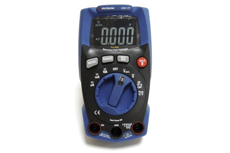 Мультиметр, ЖКИ 4000 единиц. Постоянное напряжение 600 В (±1,0%); переменное напряжение 600 В (±1,2%); постоянный ток 10 А (±1,0%); переменный ток 10 А (±1,2%); сопротивление 40 МОм (±1,5%); температура -20...760 °C. Тест диодов, прозвонка цепи, подсветка, удержание показаний...