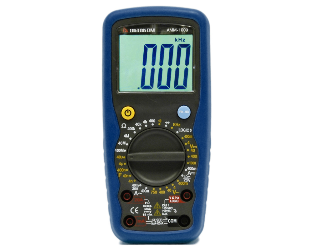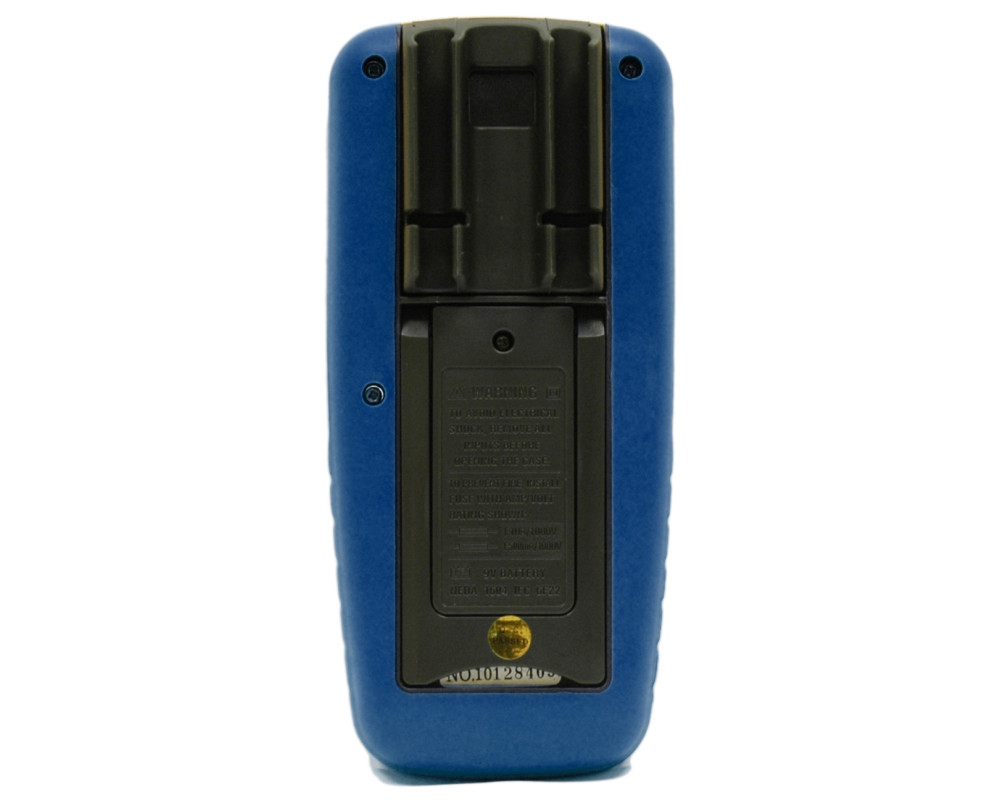 Цифровой мультиметр. Широкий ЖКИ, 4000 отсчётов. Пост. напр. 1000 В ±(0,5%); перем. напр. 750 В ±(1,0%); пост. ток 20 А ±(1,0%); перем. ток 20 А ±(1,5%); сопротивление 400 МОм ±(0,8%); ёмкость 40 мкФ ±(5,0%); частота 4000 кГц ±(0,1%); тест диодов и логики; прозвонка. Двойная изоляция. Удержание показаний, удержание пиковых значений. Защита от перегрузок CAT II 1000V. Индикатор разряда. Кейс для переноски. Питание 9 В "Крона" ; автоотключение (неотключаемое). Размеры 182х82х55 мм. Масса 360 г.