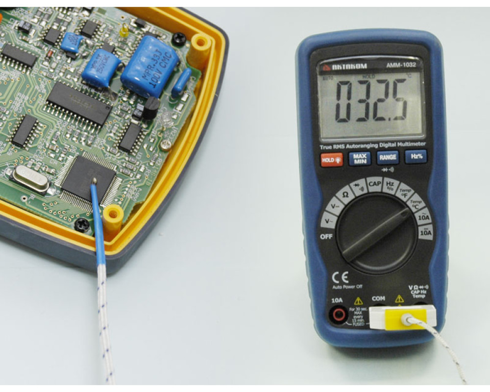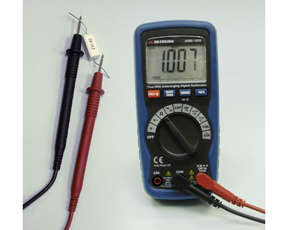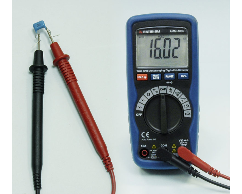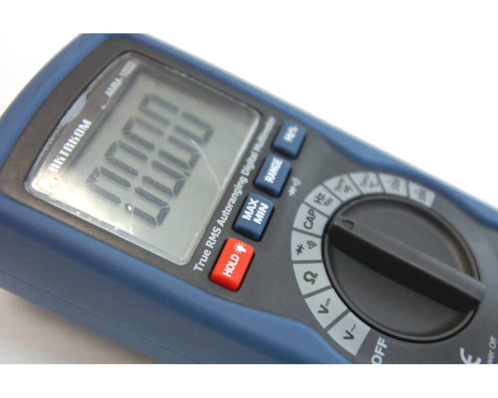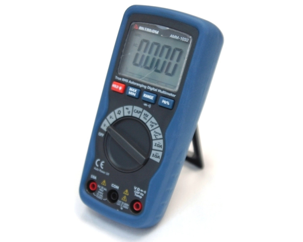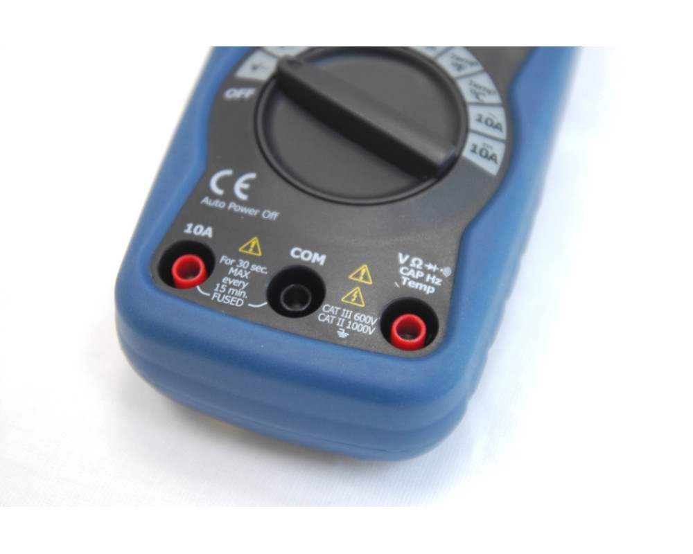 Цифровой мультиметр. Широкий ЖКИ с подсветкой и аналоговой шкалой 61 сегм., 6000 отсчётов. TrueRMS. Пост. напр. 1000 В ±(0,5%); перем. напр. 1000 В ±(1,5%); пост. ток 10 А ±(2,5%); перем. ток 10 А ±(3,0%); сопротивление 60 МОм ±(1,0%); ёмкость 4000 мкФ ±(3,0%); частота 10 МГц ±(1,2%); коэф. заполнения 99,9% ±(1,2%); температура 760°C/1400°F ±(3,0%); тест диодов; прозвонка; бесконтактный детектор напряжения. Двойная изоляция. Удержание текущ/макс/мин значений. Защита от перегрузок CAT III 600V, CAT II 1000V. Автовыбор диапазона. Термопара К-типа. Питание 9 В "Крона"; автоотключение (неотключаемое). Размеры 150х70х48 мм. Масса 255 г.