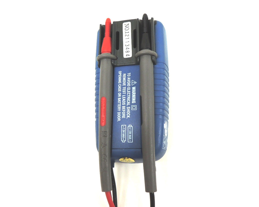 Мультиметр, ЖКИ 4000 единиц. Постоянное напр. 600 В (±0,5%); переменное напряжение 600 В (±1,2%); постоянный ток 200 мА (±2,0%); переменный ток 200 мА (±2,5%); сопротивление 40 МОм (±0,8%); ёмкость 100 мФ (±3,0%); частота 100 кГц (±0,8%); тест диодов; прозвонка. Бесконтактный датчик напряжения. Автоотключение (неотключаемое), фонарик. Автовыбор диапазонов. Питание 3В (2 ААА). Безопасное исполнение. Компактные размеры 120х55х40 мм, масса 145 г.