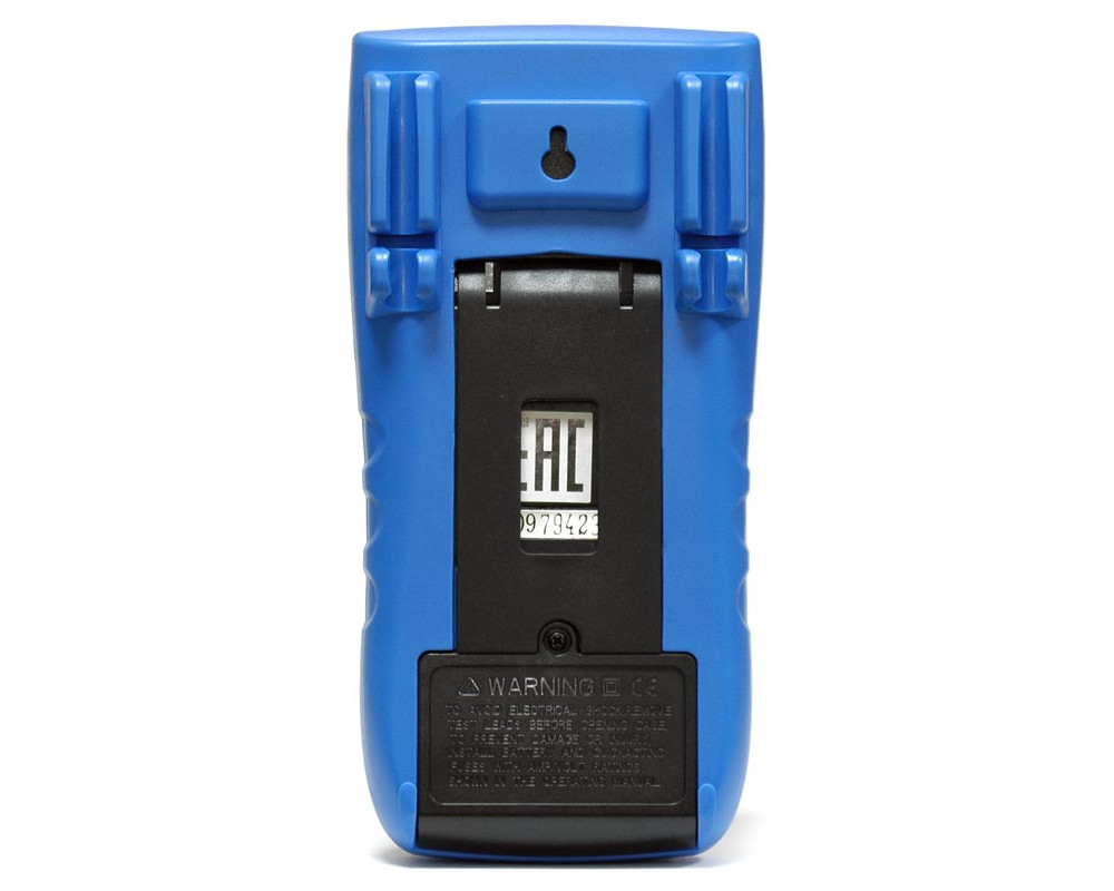 Цифровой мультиметр. TrueRMS (40-1000 Гц). ЖКИ с подсветкой, 4 1/2 разряда (19999 отсчётов). Постоянное напряжение 1000 В (±0,05%); переменное напряжение 750 В (±0,8%); постоянный ток 20 А (±0,5%); переменный ток 20 А (±1,5%); сопротивление 200 МОм (±0,4%); ёмкость 2 мФ (±4,0%); частота 2 МГц (±0,1%); проводимость 100 нСм (±1,0%), коэффициент усиления транзисторов 0...1000, тест диодов; прозвонка. Удержание показаний. Автоотключение. Защита от перегрузок CAT II 1000V. Индикатор разряда. Питание 9 В "Крона". Размеры 190х88,5х27,5 мм. Масса 422 г.