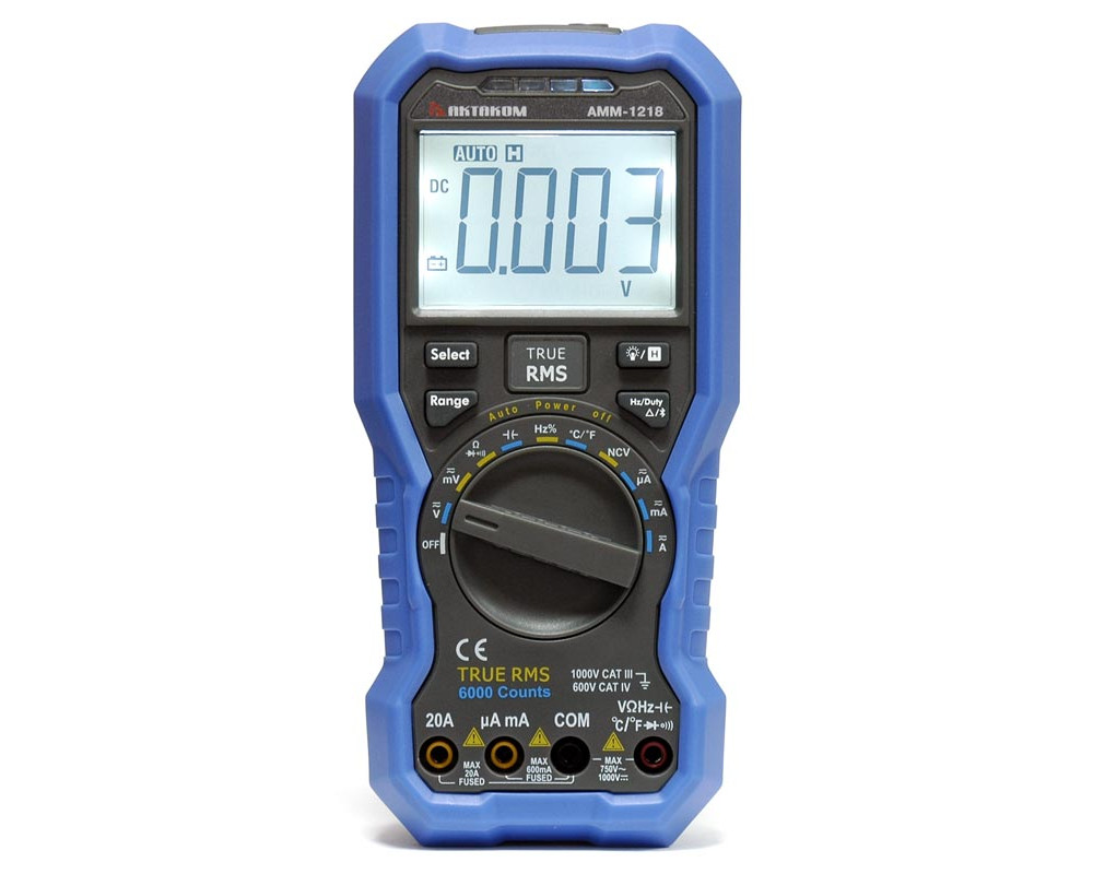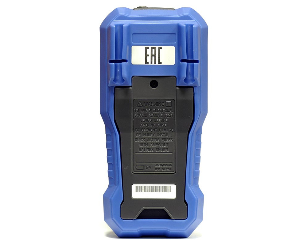 Цифровой мультиметр с функцией регистратора и интерфейсом Bluetooth. TrueRMS (1 кГц). Большой ЖКИ с подсветкой (5900 отсчётов). Пост. напр. 1000 В ±(0,5%); перем. напр. 750 В ±(0,8%); пост. ток 20 А ±(0,8%); перем. ток 20 А ±(1,0%); сопротивление 60 МОм ±(0,8%); ёмкость 60 мФ ±(2,5%); частота 10 МГц ±(0,8%); коэф. заполнения, температура -50 - 400°C ±(2,5%); тест диодов; прозвонка. Бесконтактный датчик напряжения. Встроенный фонарик. Функция регистратора (до 7 дней). Относительные измерения. Удержание показаний. Озвучивание результата. Авто и ручной выбор диапазона, Автоотключение. Защита от перегрузок 600 В, CATIV / 1000 В, CATIII. Bluetooth модуль BLE 4.0. Питание 9 В (Крона). Размеры 190х90х56 мм. Масса 320 г.