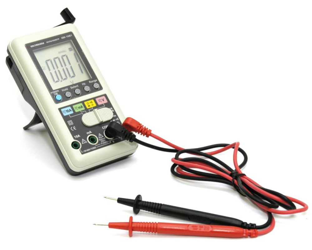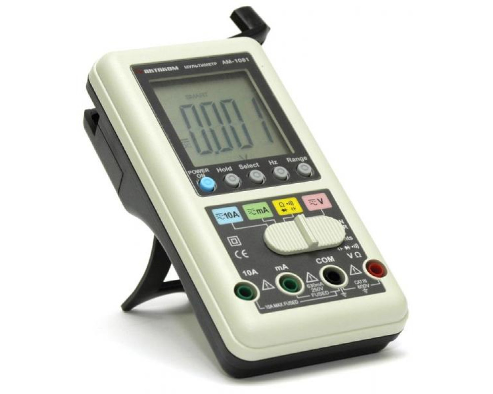 Мультиметр цифровой. ЖКИ 6000 разрядов; 46х45 мм. Базовая погрешность 1%. Измерение постоянного и переменного напряжения 1 мВ...600 В; постоянного и переменного тока 0,01 мА...10 А; сопротивления 0,1 Ом...6 МОм; ёмкости 0,001...60 мкФ; частоты 1 Гц...1 кГц. Выбор диапазона автоматический или ручной. Функция "SMART" (автоматического определения режима измерений), автоопределения полярности, автоотключения (неотключаемое) и индикации перегрузки. Питание от встроенного аккумулятора (подзарядка от ручного генератора) или батарей типа CR-2032 / 3 В (не входят в комплект поставки). Габаритные размеры 152х78х45 мм. Масса 0,34 кг.