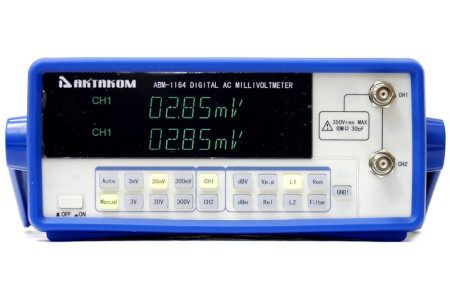 2 независимых канала. Разрядность до 4 1/2. Измерение переменного напряжения (mV, V) в диапазоне 50 мкВ…300 В (5 Гц…5 МГц), мощности (-83 дБм...52 дБм ). Индикация в dBmV, dBV, Vp-p. Наилучшее разрешение 0,0001 мВ. Базовая погрешность 1,5%. Автом. и ручной выбор диапазона, Интерфейс RS-232, поддержка команд SCPI. ВФД дисплей. Габаритные размеры 106..