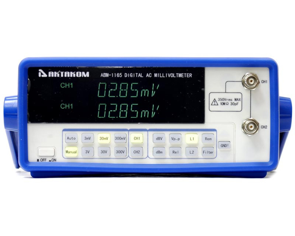 2 независимых канала. Разрядность до 4 1/2. Измерение переменного напряжения (mV, V) в диапазоне 50 мкВ…300 В (5 Гц…5 МГц), мощности (-83 дБм...52 дБм ). Индикация в dBmV, dBV, Vp-p. Наилучшее разрешение 0,0001 мВ. Базовая погрешность 1,5%. Автом. и ручной выбор диапазона, Интерфейс RS-232, поддержка команд SCPI. ВФД дисплей. Габаритные размеры 106х260х375 мм. Вес около 3 кг