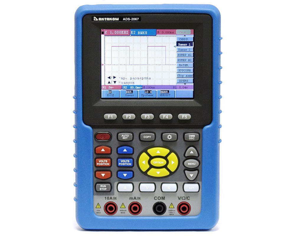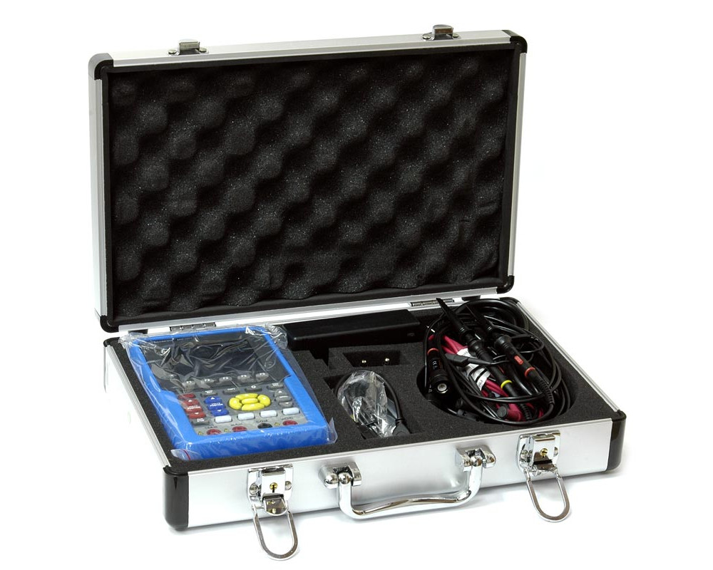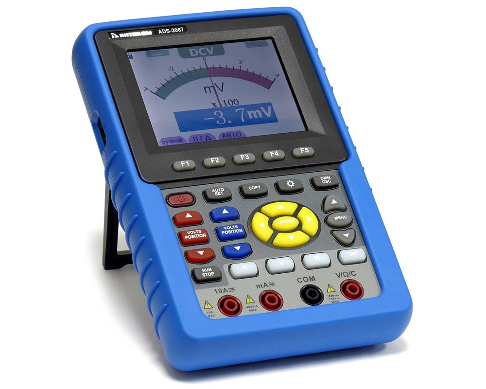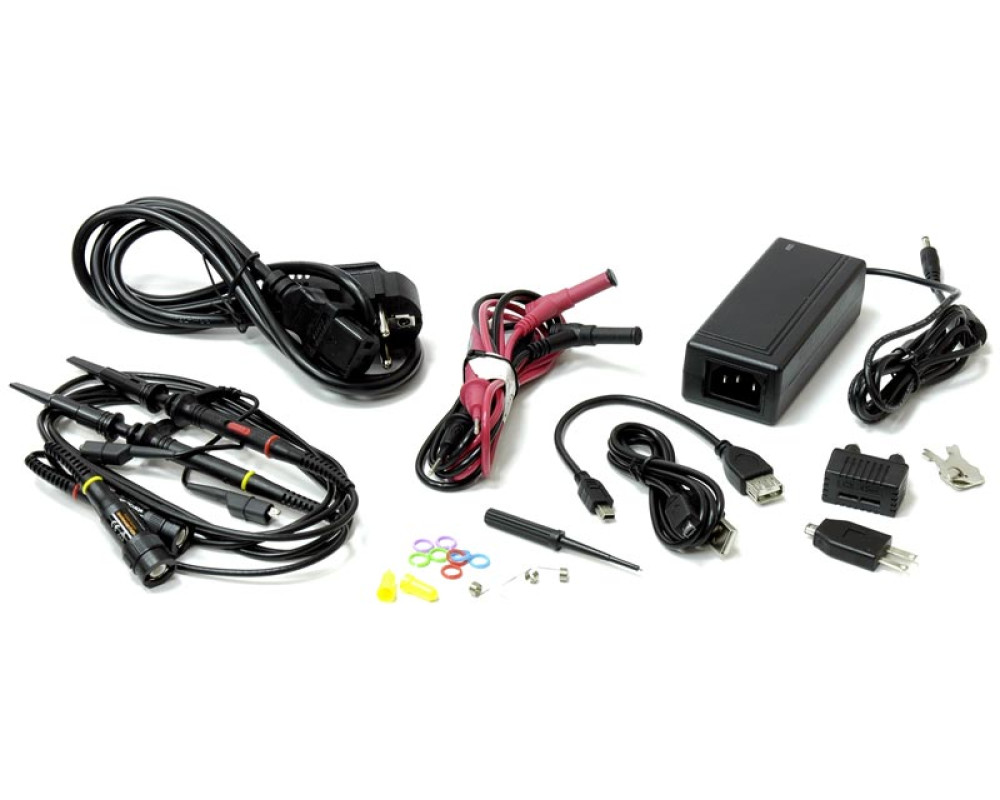 Осциллограф-мультиметр-генератор. Полоса пропускания 40 МГц. 2 аналоговых канала. Максимальная дискретизация 250 Мвыб/с. Максимальная длина записи 8 К точек. Скорость захвата осциллограмм 10000 осц/с. Вертикальное разрешение 8 бит. Цифровой мультиметр (TrueRMS, 20000 отсчетов, независимые входы). Генератор сигналов (25 МГц, 1 канал, 14 бит). Интерф..