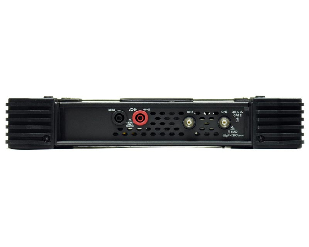 Осциллограф-мультиметр-генератор. Полоса пропускания 70 МГц. 2 аналоговых канала. Максимальная дискретизация 250 Мвыб/с. Максимальная длина записи 8 К точек. Скорость захвата осциллограмм 10000 осц/с. Вертикальное разрешение 8 бит. Цифровой мультиметр (TrueRMS, 20000 отсчетов, независимые входы). Генератор сигналов (25 МГц, 1 канал, 14 бит). Интерф..