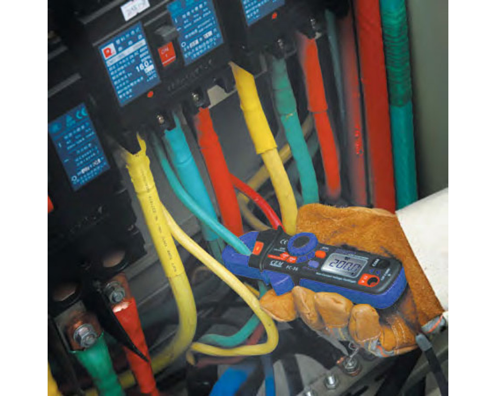 Токовые клещи-мультиметр. Измерение: постоянного тока (100 мА - 2000 А), действующее значение (True RMS) переменного тока 50 Гц - 60 Гц (0,1 - 2000) А, мультиметр (100 нА - 400 мА) постоянного напряжения (0,1 мВ - 1000 В), переменного напряжения 40 Гц - 1 КГц (0,1 мВ - 1000 В), сопротивления (0,1 Ом - 40 МОм), емкость (10 пФ - 50 мФ), изм. частоты..