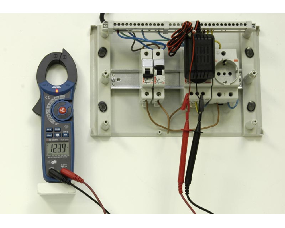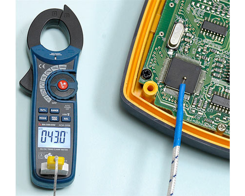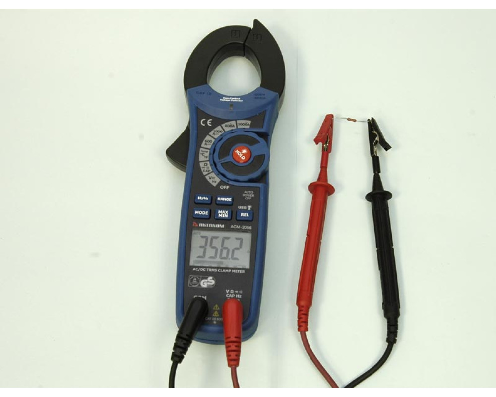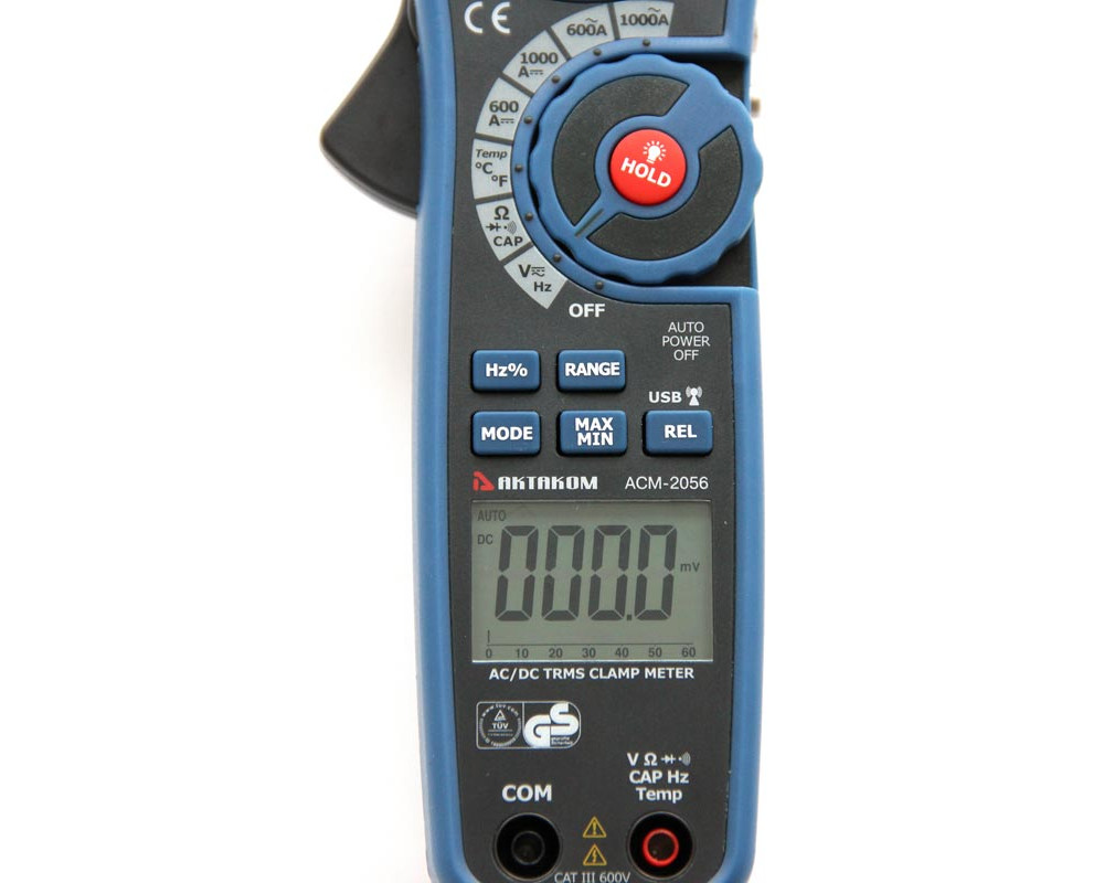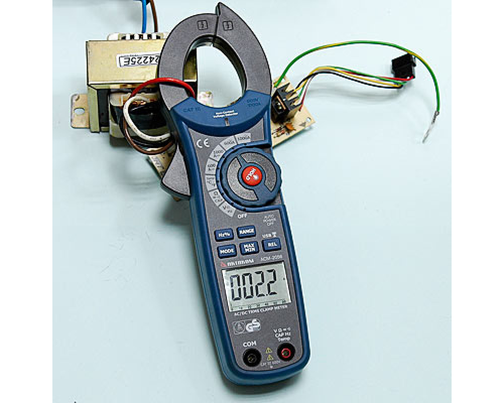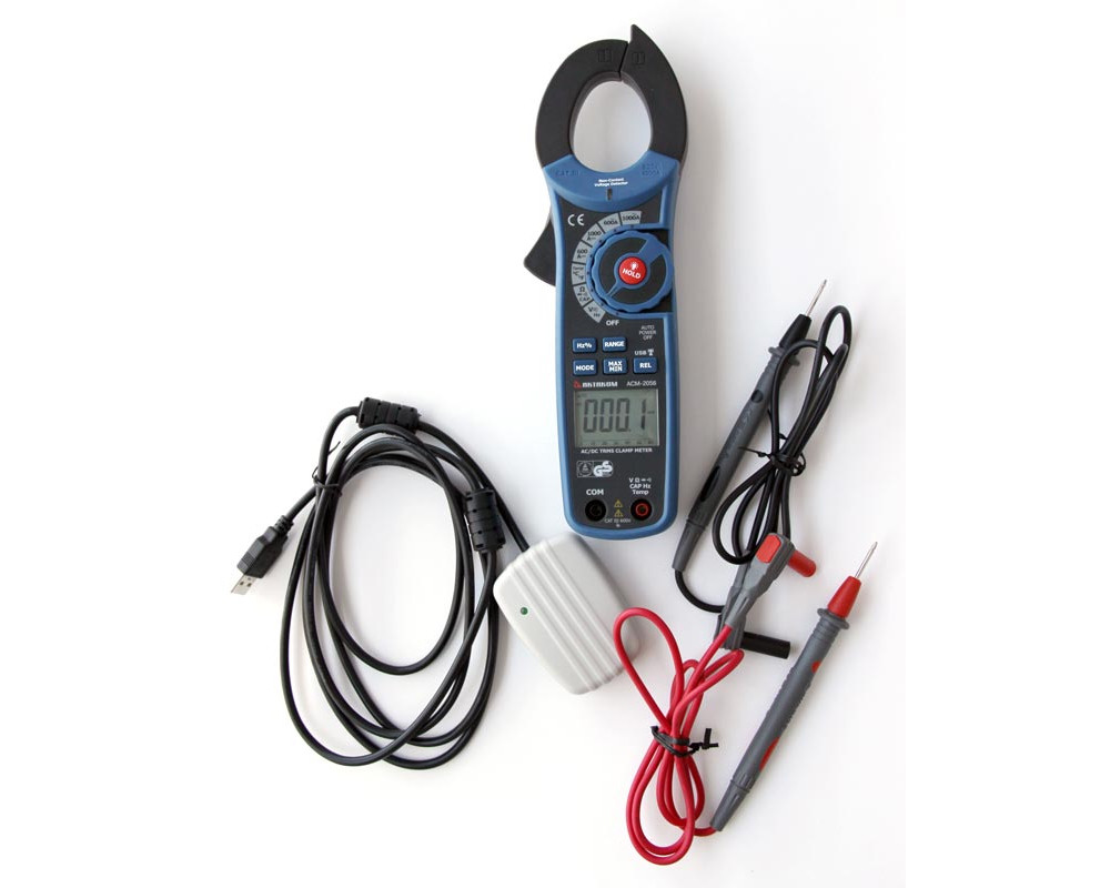 Токоизмерительные клещи-мультиметр. Охват 40 мм. ЖКИ с подсветкой и аналоговой шкалой (61 сегм.), 6 000 отсчётов. True RMS. Пост. / перем. напряжение 600 В ±(0,8%+2 / 1,8%+8); пост./перем. 1000 А ±(2,8%+5 / 2,8%+5); сопротивление 60 МОм ±(1,0%+4); ёмкость 4000 мкФ ±(3,0%+5); частота 10 кГц ±(1,5%+2); температура 760°C/1400°F ±(3,0%+5°C/9°F); тест диодов (0,3 мА); прозвонка (>40 Ом). Бесконтактный детектор напряжения (NCV). Hold/Min/Max/Rel. Интерфейс USB (беспроводной; (915 МГц, -109dBm, <100 м). Кабель USB и диск с ПО. Кейс для переноски. Защита CAT III 600V. Питание 9 В "Крона". Размеры 232x77x39 мм. Масса 271 г.