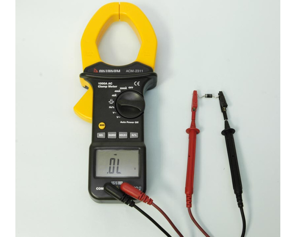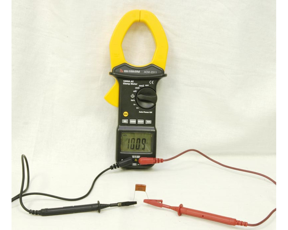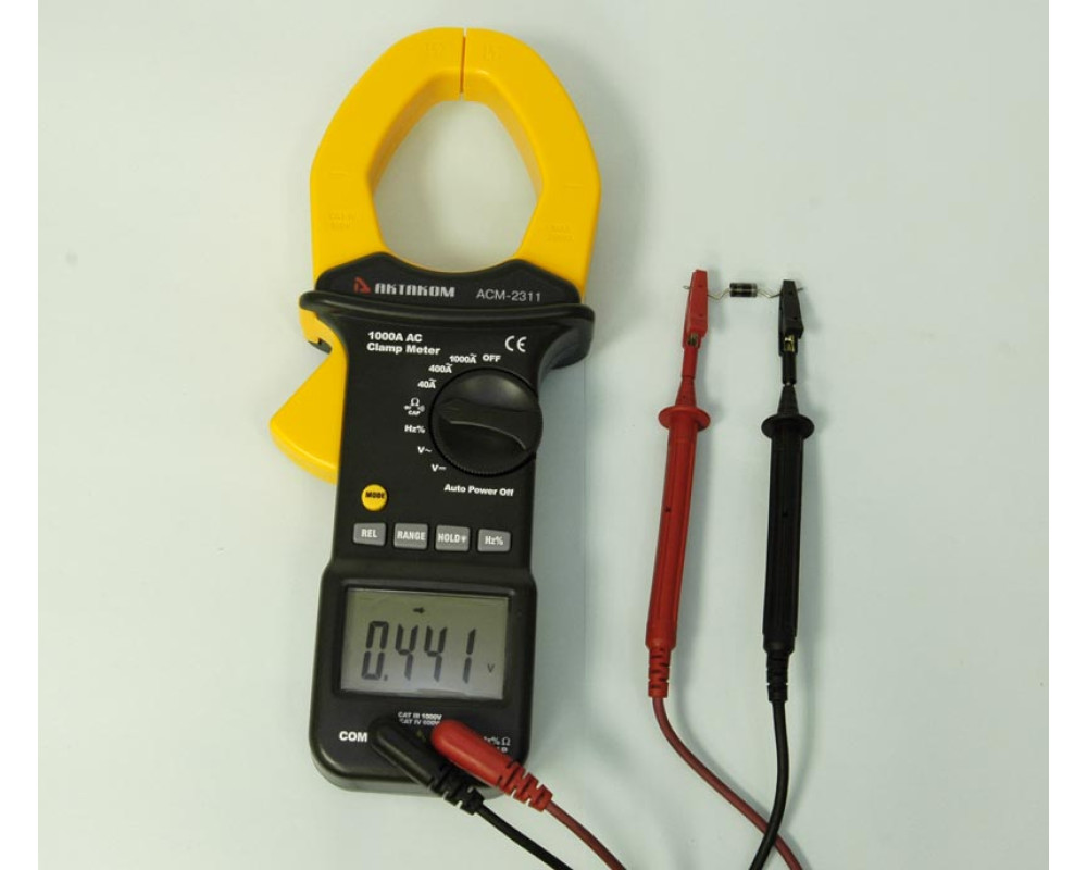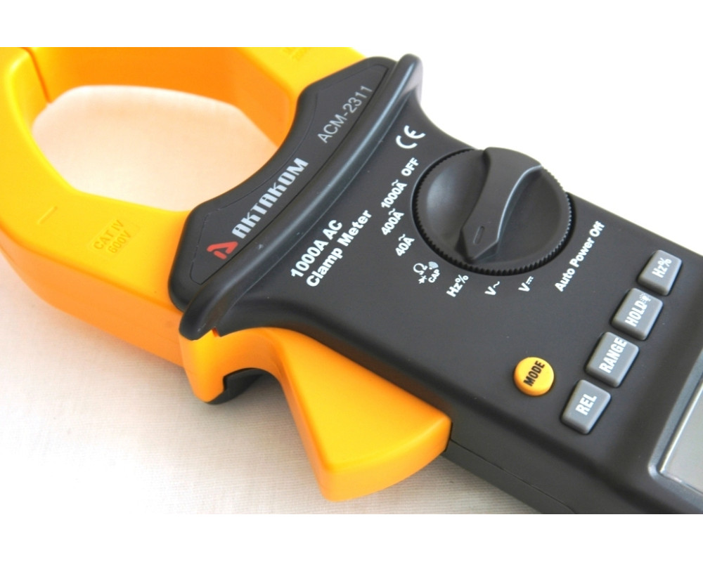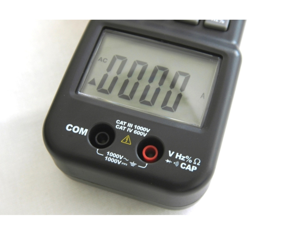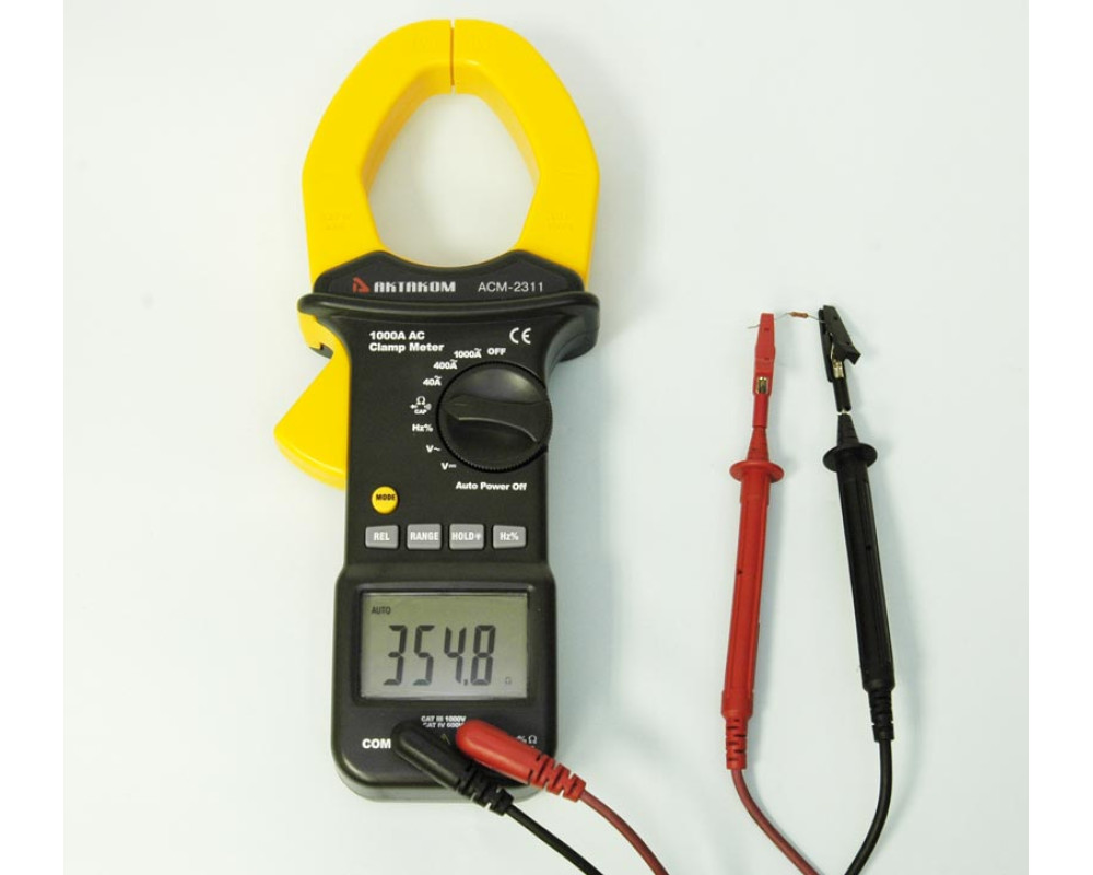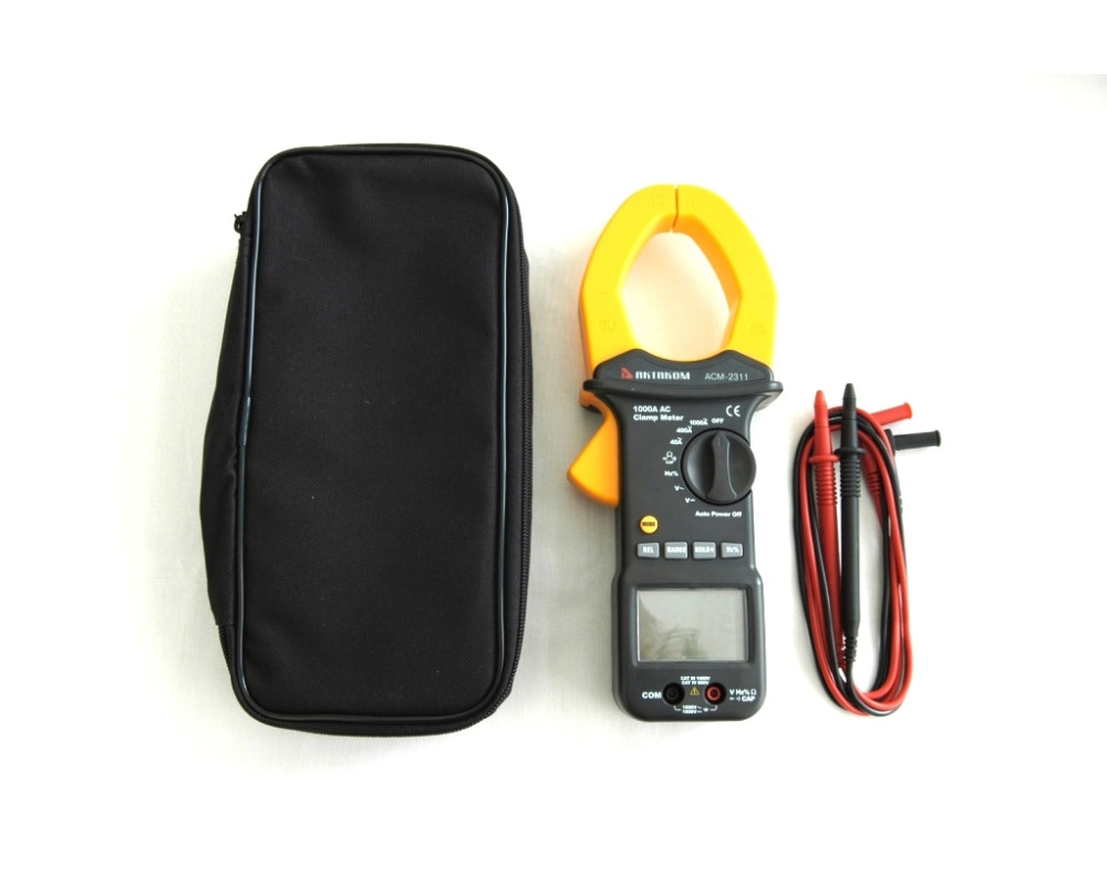 Токоизмерительные клещи переменного тока + мультиметр. Охват 55 мм. ЖКИ с подсветкой, 4 000 отсчётов. Пост. / перем. напряжение 0,1 мВ...1000 В ±(0,5%+4 / 1,0%+4); перем. ток 100 мА...1000 А ±(2,5%+5); сопротивление 0,1 Ом...40 МОм ±(1,0%+2); ёмкость 0,01 нФ...100 мкФ ±(3,0%+5); частота 0,001 Гц...10 МГц ±(1,2%+2); тест диодов; прозвонка. HOLD. Автоотключение. Индикатор разряда. Кейс для переноски. Защита CAT IV 600V, CAT III 1000V. Питание 9 В "Крона". Размеры 270х107х50 мм. Масса 554 г.