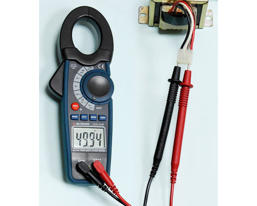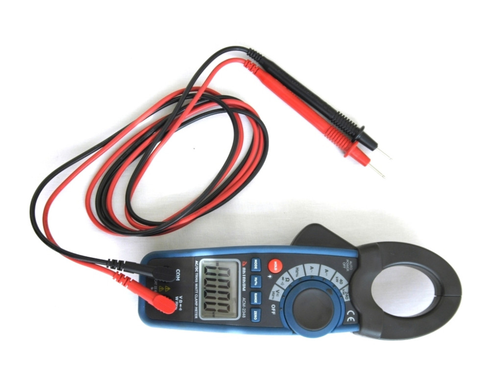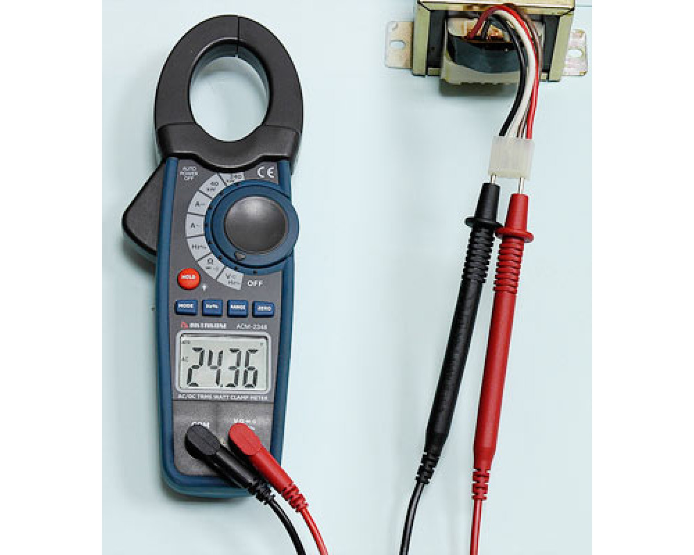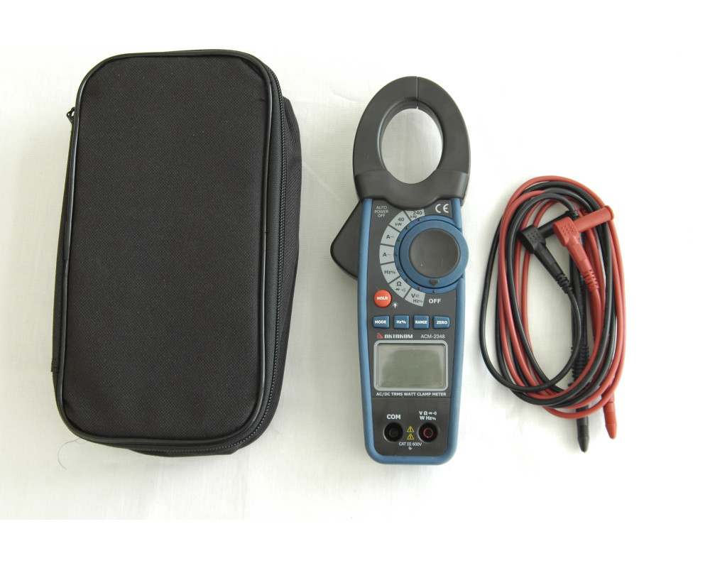 Токоизмерительные клещи-ваттметр. Охват 30 мм. ЖКИ с подсветкой, 4 000 отсчётов. True RMS. Пост. / перем. напряжение 0,1 мВ...600 В / 1000 В ±(0,8%+3 / 0,8%+20); пост. / перем. ток 1 А...1000 А ±(1,8%+5 / 2,0%+5); активная мощность (AC / DC) 10 Вт...240 кВт (2,0%+5 / 2,5%+5); сопротивление 0,1 Ом...40 МОм ±(1,0%+4); частота 100 кГц ±(1,2%+2); коэф. заполнение 0,5…99,9%; тест диодов; прозвонка. HOLD. Индикатор разряда, автоотключение. Установка "0" (DCA). Кейс для переноски. Защита CAT III 600V. Питание 9 В "Крона". Размеры 229х80х49 мм. Масса 303 г.