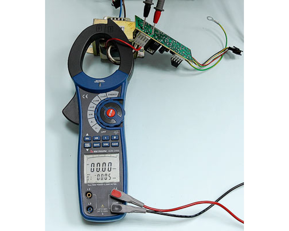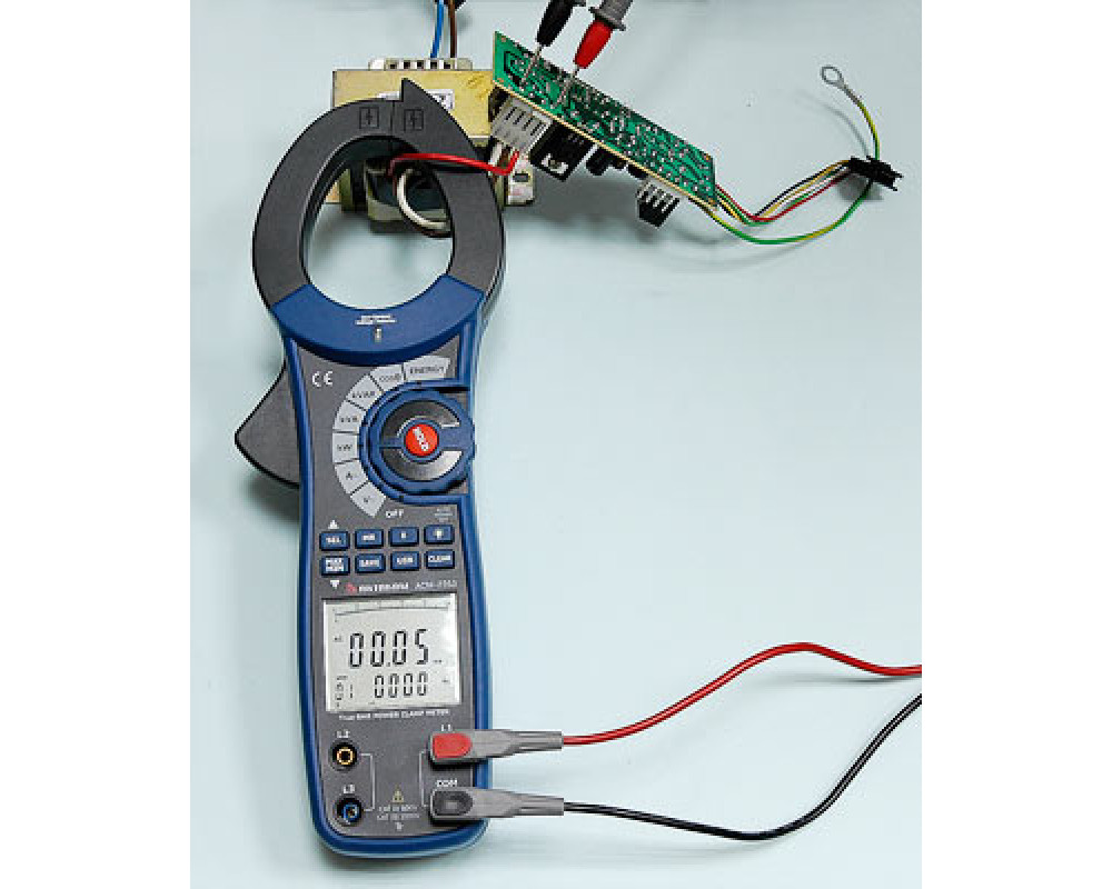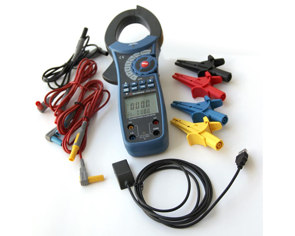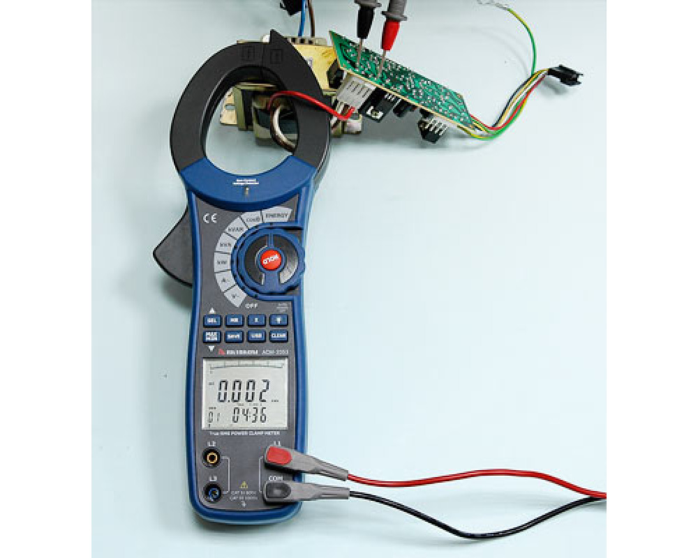 Токоизмерительные клещи переменного тока + ваттметр (1-ф./3-ф. симм.). Охват 55 мм. ЖКИ с подсветкой и аналоговой шкалой (41 сегм.), 9999 отсчётов. True RMS. Перем. напряжение 750 В ±(1,2%+5); перем. ток 1000 А ±(2,0%+5); акт., реакт. и полная мощность 750 кВт/кВА/квар ±(3,0%+5 / 3%+5 / 4%+5); коэф. мощности 0,3...1 ±(2,0+20); фазовый угол 0...90° ±(2,0°); частота 20...200 Гц ±(0,5%+5); энергия 1...9999 кВтч ±(3,0%+2). Бесконтактный детектор напряжения (NCV). Удержание тек./Min/Max значений. Автовыбор диапазонов. Индикатор перегрузки, автоотключение. Память 99 ячеек. Интерфейс USB. Кабель USB. Кейс для переноски. Защита CAT IV 600V, CAT III 1000V. Питание 9 В "Крона". Размеры 295х100х46 мм. Масса 537 г.