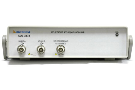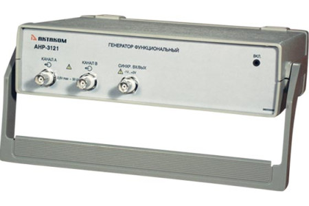 2-х-канальный генератор сигналов произвольной формы - приставка к ПК: 0,02 Гц - 10 МГц, синус, прямоугольник, треугольник, произвольный сигнал, максимальная амплитуда выходного сигнала Uп-п=10 В, дискретизация 12 Бит/100 МГц/128 кБ, вых. фильтр, доп. функции: режим X-Y, возможность задания сигналов в виде формулы или рисунка, USB 1.1; ПО для Window..