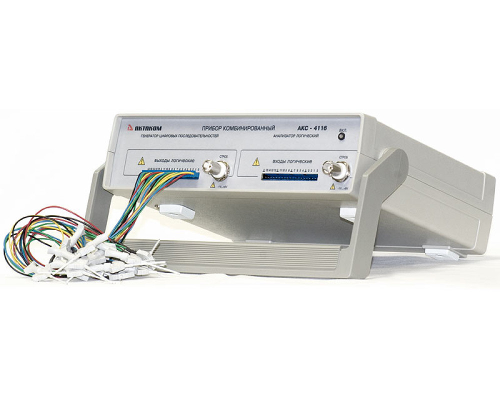 , используется для настойки цифровых схем. Выполнен в виде приставки к ПК. Лог. анализатор:16 каналов, частота дискр. от 2 кГц до 200 МГц, память 256 кБ на канал, диапазон порога срабатывания -1,8…+6,9 В, вх. сопр. 200 кОм/5 пФ, Доп. функции: запуск по шаблону данных, длит. шаблона, по фронту любого бита данных, по шаблону и фронту и др., регул. размера предзаписи и послезаписи и т.д.Ген. паттернов: 16 каналов, частота внутр. тактиров. до 100 МГц, частота внеш. тактиров. до 50 МГц, память 256 кБ на канал, ампл. вых. напр. от 1.8 В до 4.3 В, возможность загрузки сигнала из файла, USB 1.1, ПО для Windows XP, Windows 7, Windows 8, Windows 8.1, Windows 10; +6 В/220 В/50 Гц, габариты 260х210х70 мм, масса 1 кг.