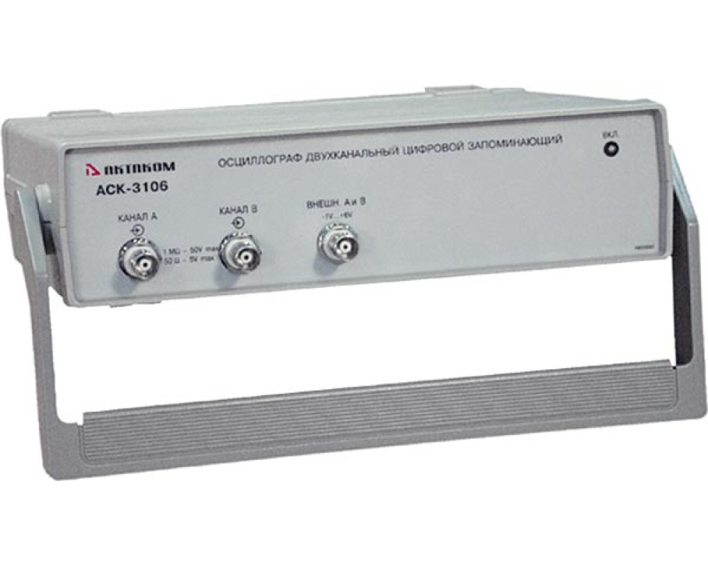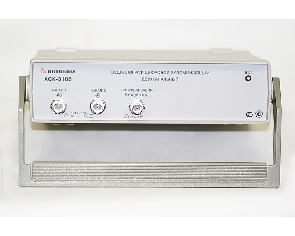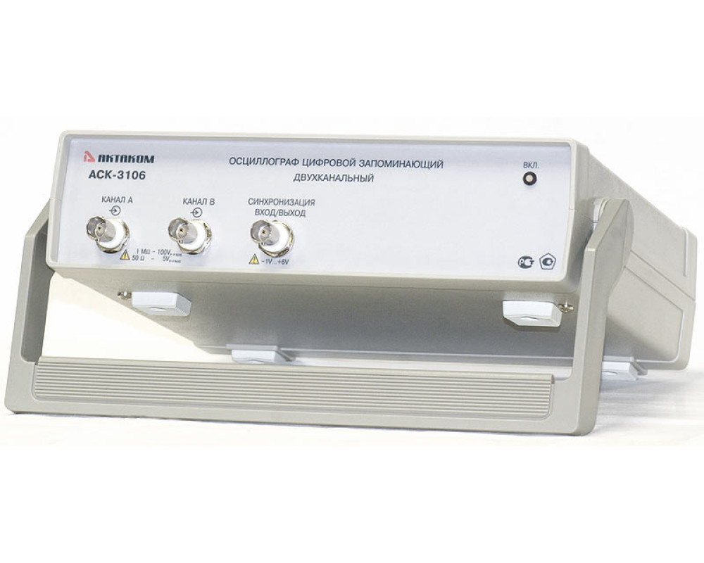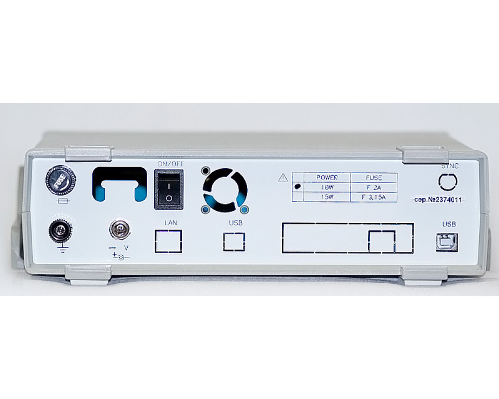 2-х канальный USB осциллограф - внешняя приставка к ПК, 100 МГц, дискретизация 8 бит/ 100 MS/s-10 GS/s, коэфф. отклонен. 2 мВ/дел - 10 В/дел., коэф. развертки 0,01 мкс/дел - 100 ч/дел., макс. вх. напряжение ±100 В, входы 1 МОм/50 Ом, режим самописца, анализатор спектра, цифровая фильтрация, вх. внешн. синхронизации, калибратор, USB 1.1.; ПО для Windows XP, Windows 7, Windows 8, Windows 8.1, Windows 10, пит. 220 В, габариты 260х210х70 мм, масса 0,82 кг
