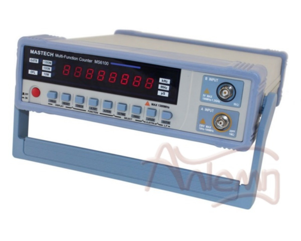 Mastech MS6100 - интеллектуальный многофункциональный частотомер. Он управляется 8-битным микроконтроллером с 8-разрядным диодным дисплеем высокой яркости. 4 функции измерения: частоты, периода, суммы, самопроверка включены в частотомер. 10 МГц на выходе OSC. Входной сигнал может быть подвержен затуханиям.