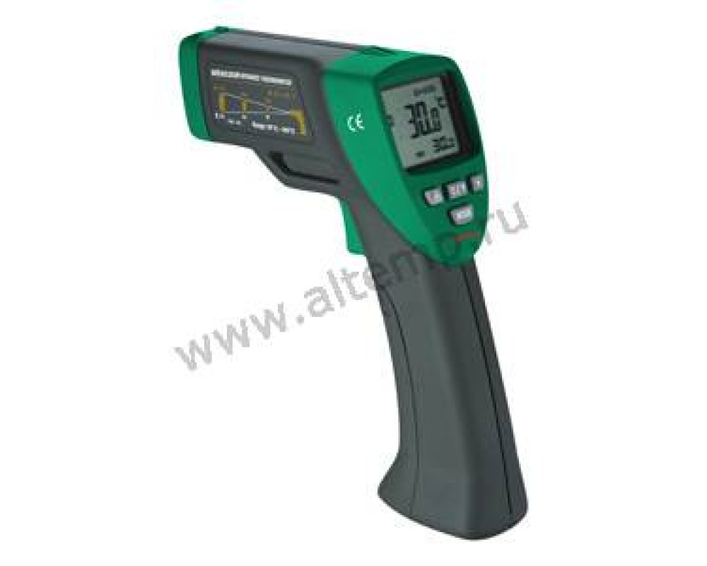 - Лазерный бесконтактный цифровой пирометр Mastech MS6530B (инфракрасный термометр) - прибор для дистанционного измерения температуры окружающей среды или отдельных предметов. Измерение происходит с помощью лазерного луча, который наводится на объект измерения. Таким образом, цифровой пирометр позволяет дистанционно измерять температуры предметов, где измерения контактным способом невозможны.