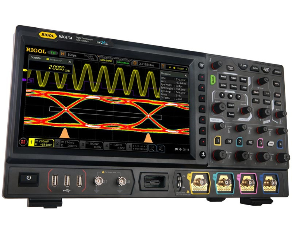 4 аналоговых канала + 16 цифровых (опция). Полоса пропускания - 600 МГц (1 ГГц, 2 ГГц - опция). Технология UltraVision 2. Максимальная частота дискретизации - 10 Гвыб/с (5 Гвыб/с - два канала, 2,5 Гвыб/с каждый канал). Максимальная память - 500 М точек. АЦП 8 бит (12 бит - высокое разрешение). Скорость захвата 600000 осц./с. Анализ осциллограмм (до 450000 кадров). Расширенная синхронизация (12 типов штатно), протоколы последовательных шин (опция): I²C, RS-232, UART, SPI, CAN, FlexRay, LIN, I²S и MIL-STD-1553. Зональный запуск. Декодирование протоколов (опция). Анализ джиттера и глазковых осциллограмм (опция). 41 тип автоизмерений. Математические функции. Статистика. БПФ. Цифровой вольтметр. Частотомер. Встроенный генератор (опция). Интерфейсы: USB-host, USB-device, LAN (c VNC Web, LXI-C), HDMI; GPIB (опция). Дисплей: 10,1", цветной, сенсорный, 1024 х 600. Вес: 4,0 кг. Размеры: 410 x 224 x 135 мм.