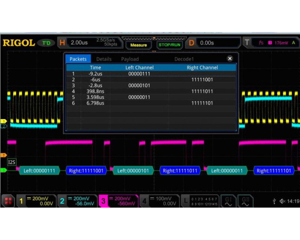 Опция декодирования для протоколов RS-232/UART, SPI, I²C. Подходит для осциллографов Rigol серии DS1000Z и MSO1000Z..