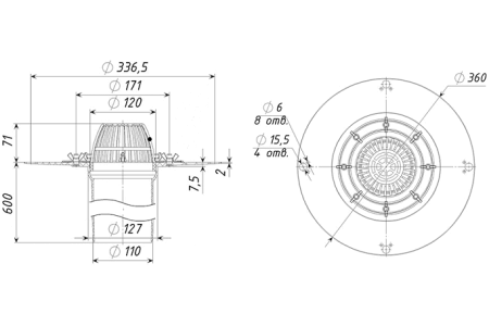 Кровельная воронка ТП-01.100/6-Э с электроподогревом.
