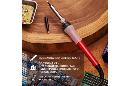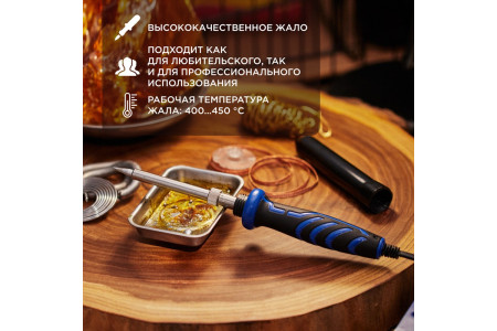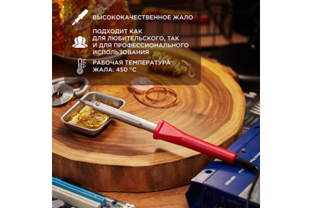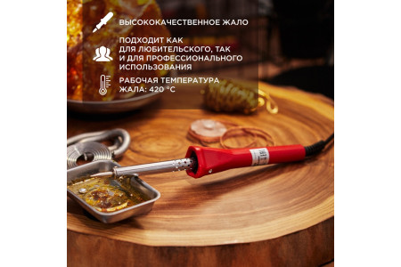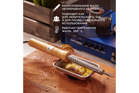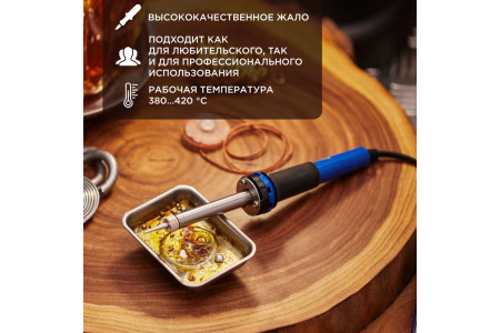 ОписаниеПаяльник с деревянной ручкой серии WOOD мощностью 100Вт REXANT предназначен для ручного монтажа/демонтажа деталей среднего и крупного размера, а также для лужения. Подходит как для любительского, так и для профессионального использования. Долговечное жало паяльника состоит из медьсодержащего сердечника, покрытого слоем хрома. В случае необх..