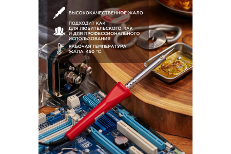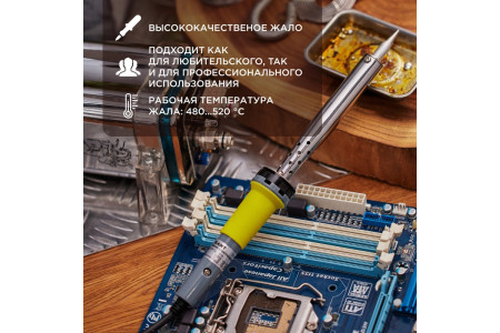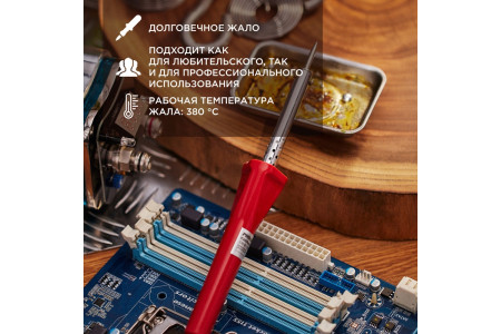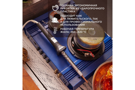 ОписаниеПаяльник с долговечным жалом серии ТОЧНАЯ ПАЙКА мощностью 30Вт REXANT предназначен для ручного монтажа/демонтажа электронных компонентов и других мелких деталей. Подходит как для любительского, так и для профессионального использования. Долговечное жало паяльника состоит из медьсодержащего сердечника, покрытого слоем электролитически осажде..